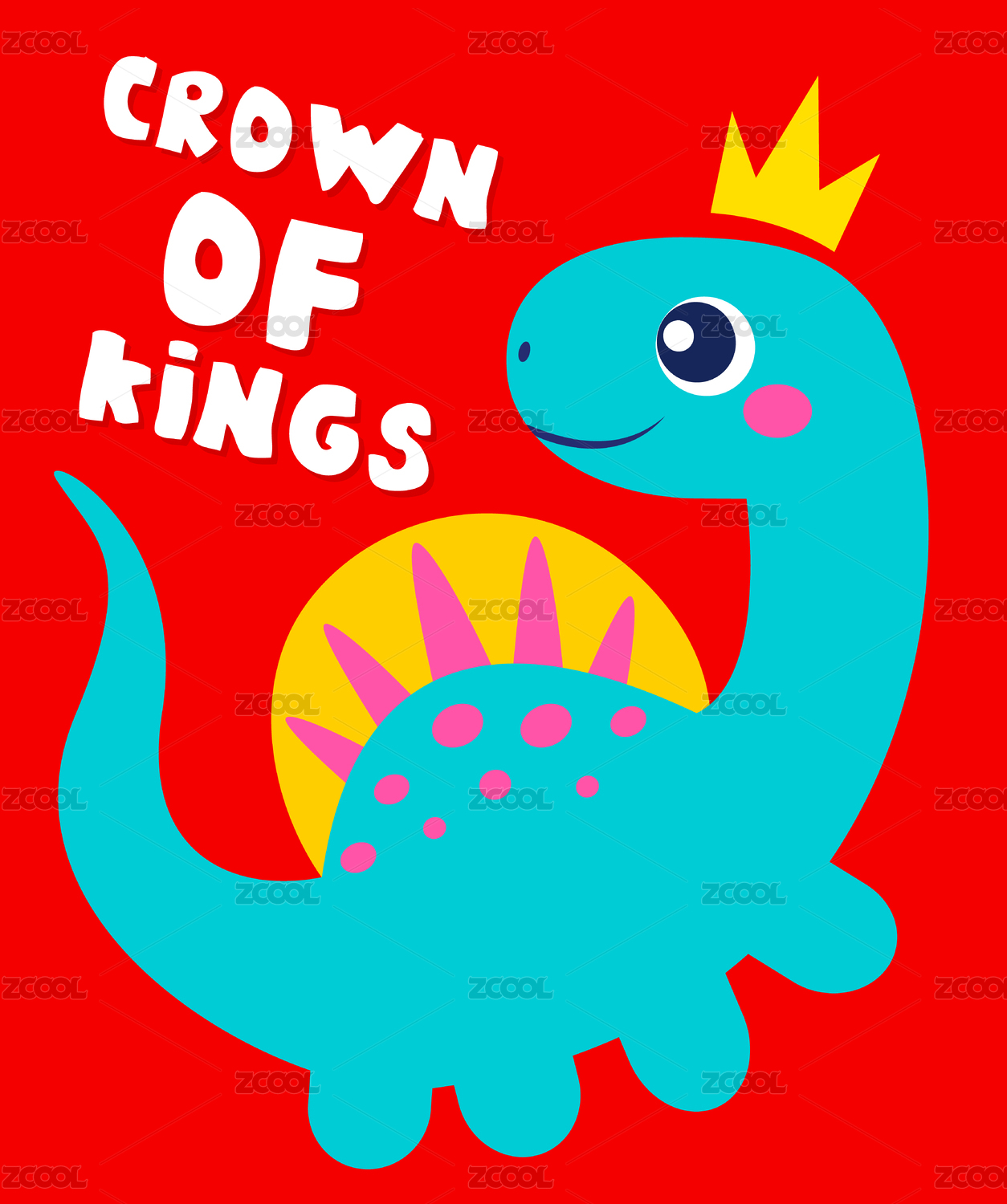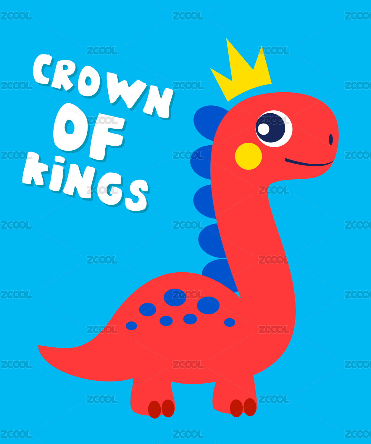 可爱的戴王冠卡通矢量小恐龙