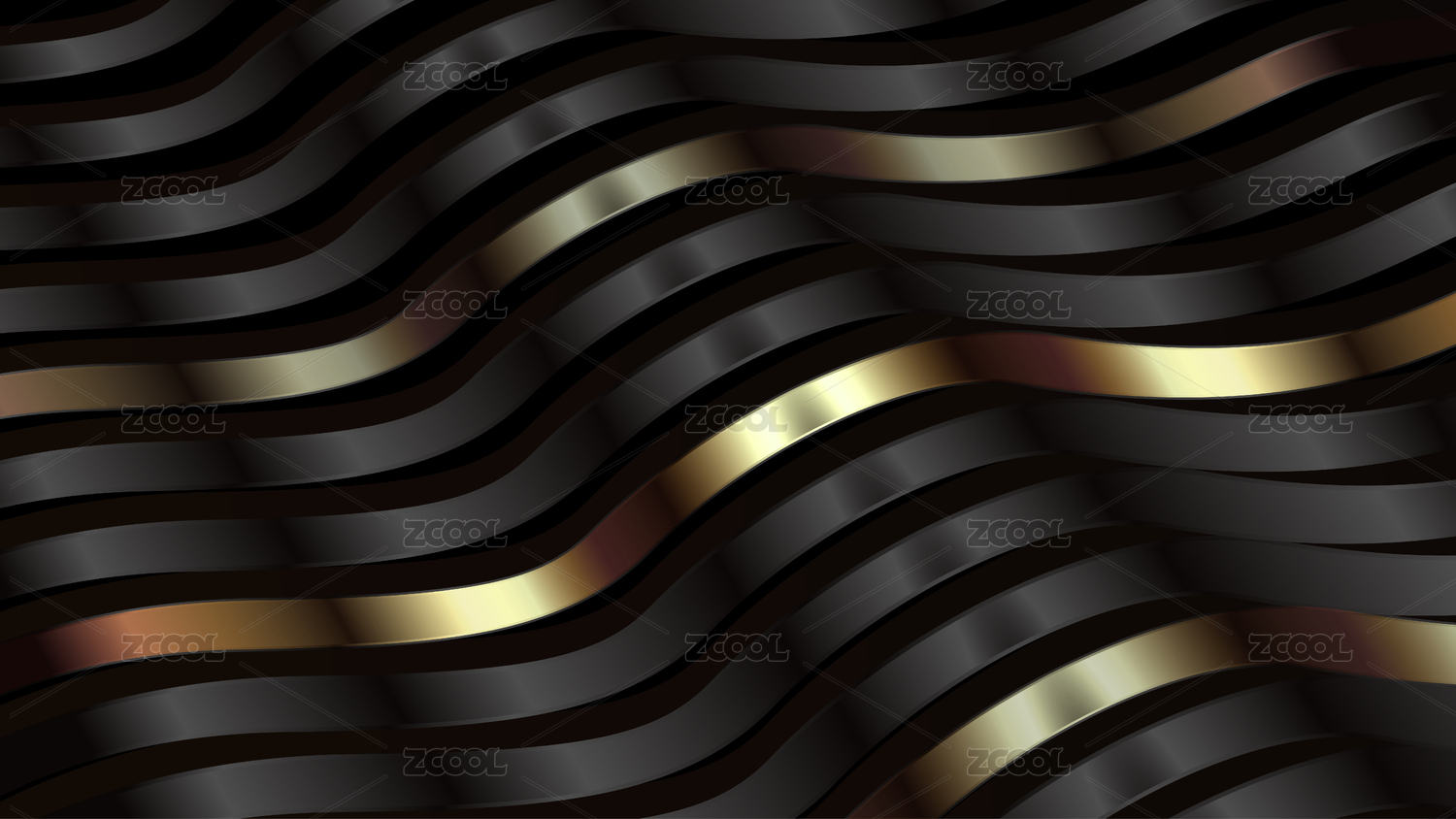 黑金渐变波浪条纹线条高端质感纹理背景