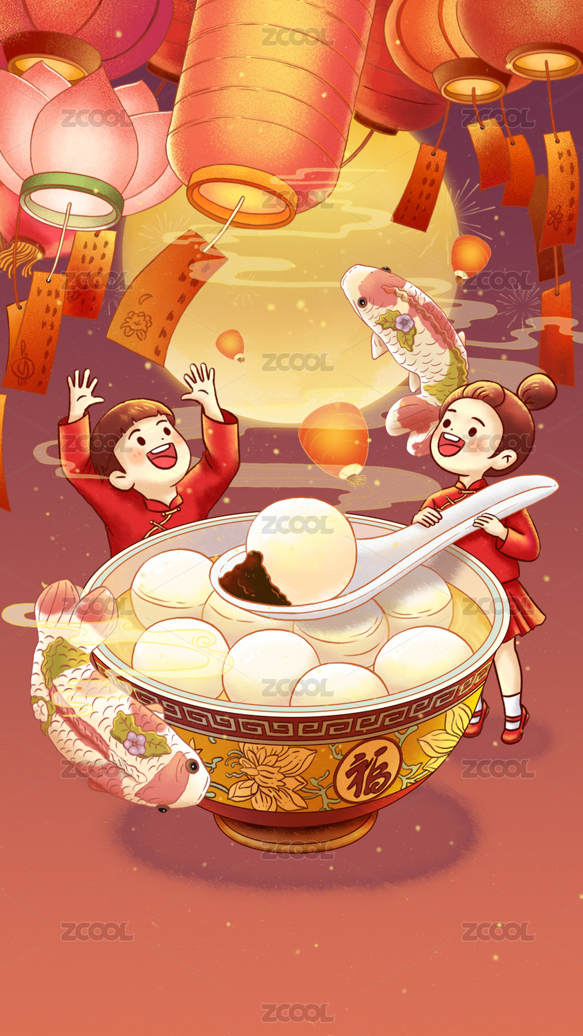 元宵节闹元宵创意插画