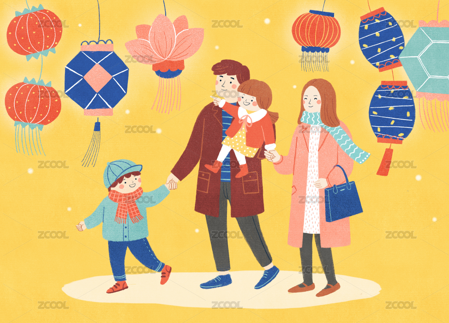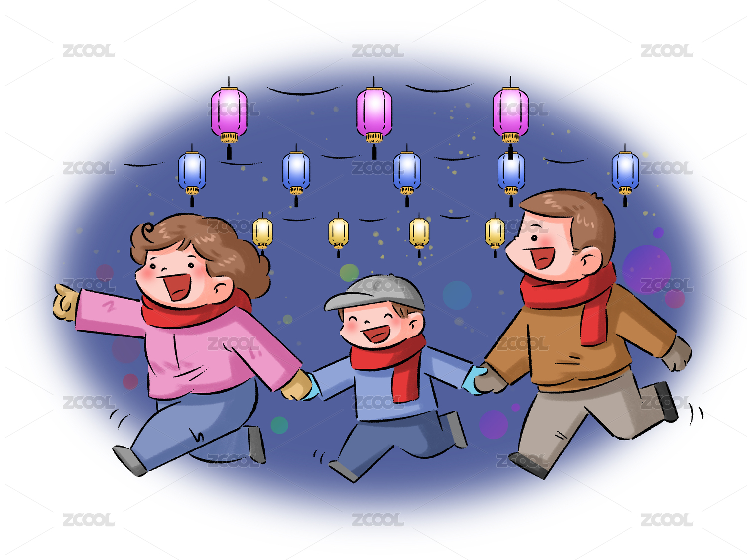 一家人逛灯会