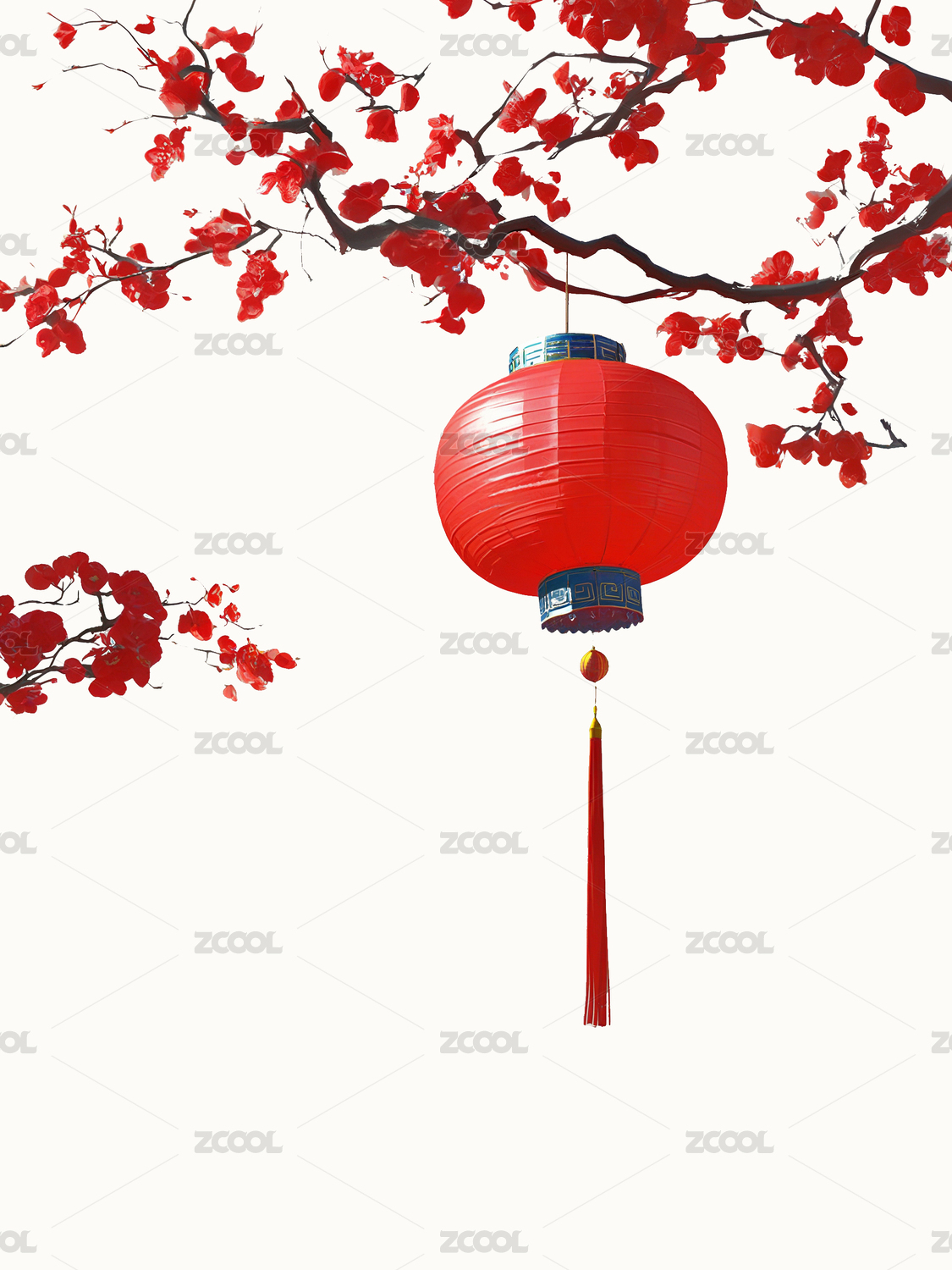 白色背景红色古风灯笼新年装饰