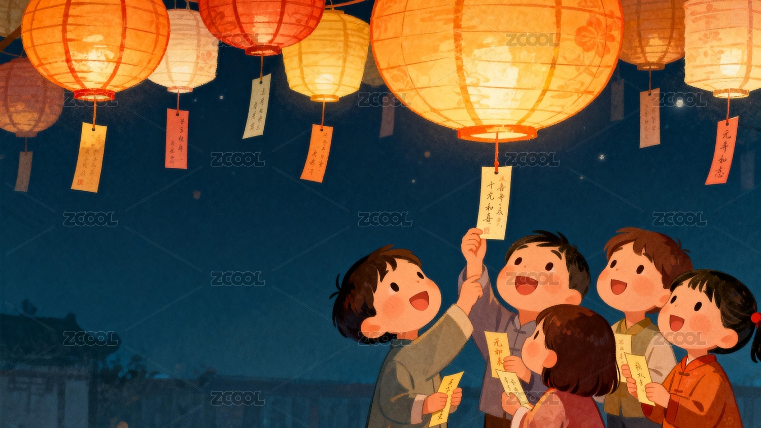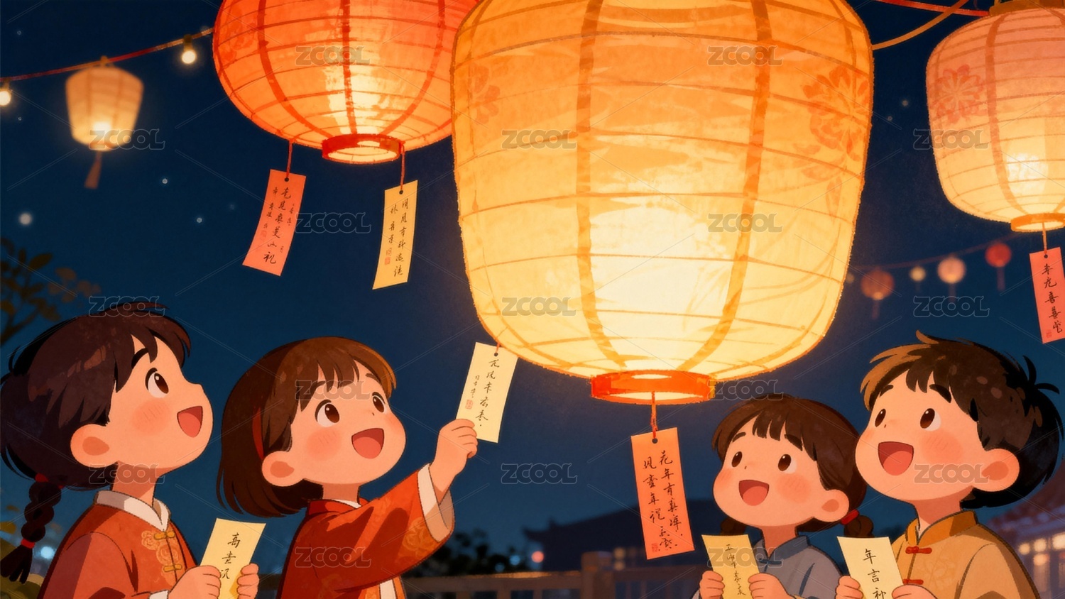 孩童赏灯猜谜夜