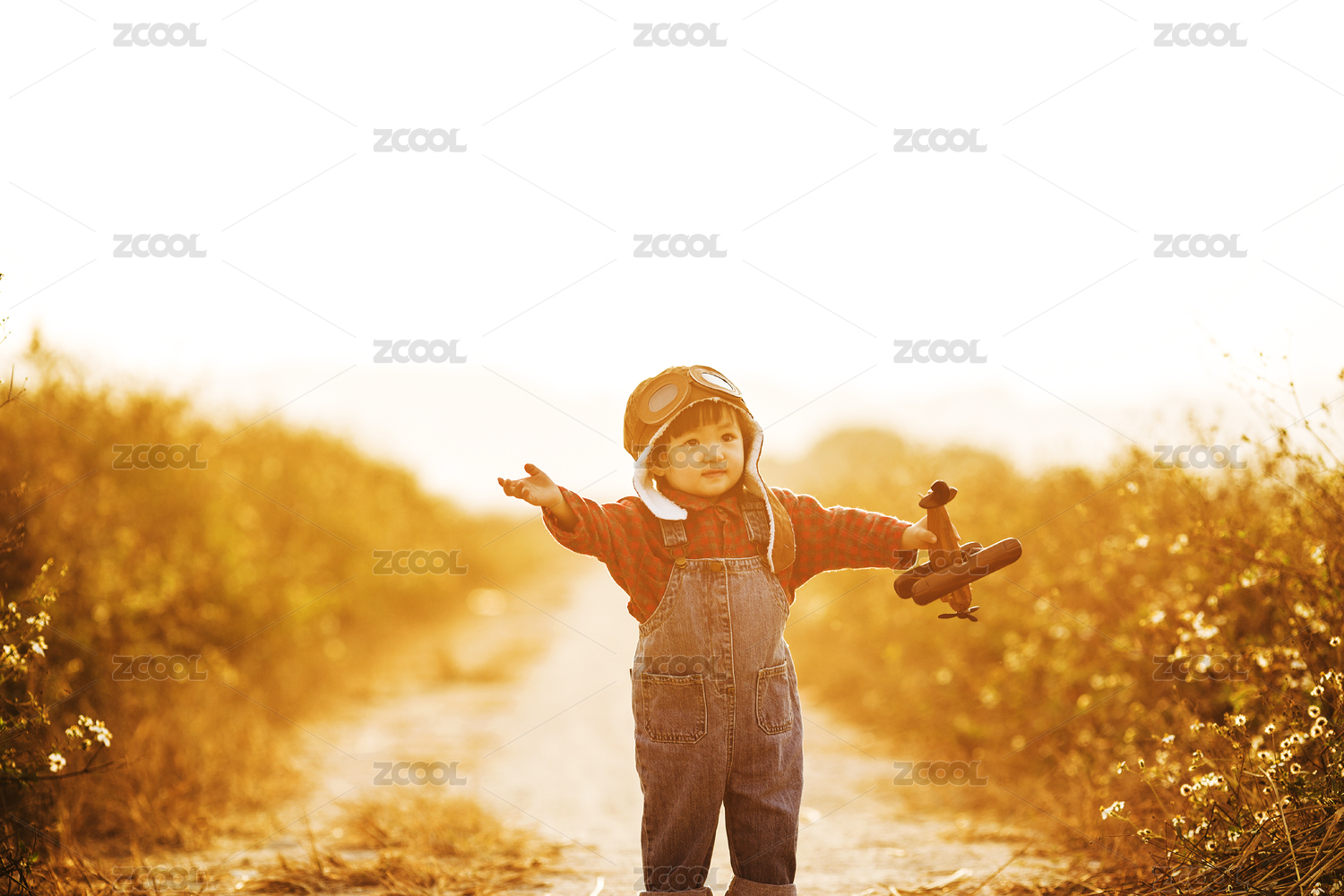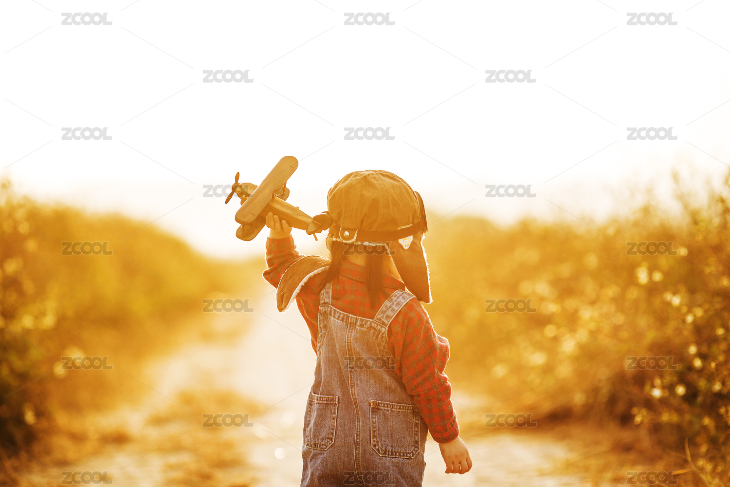 女孩子拿着飞机模型在玩梦想成为飞行