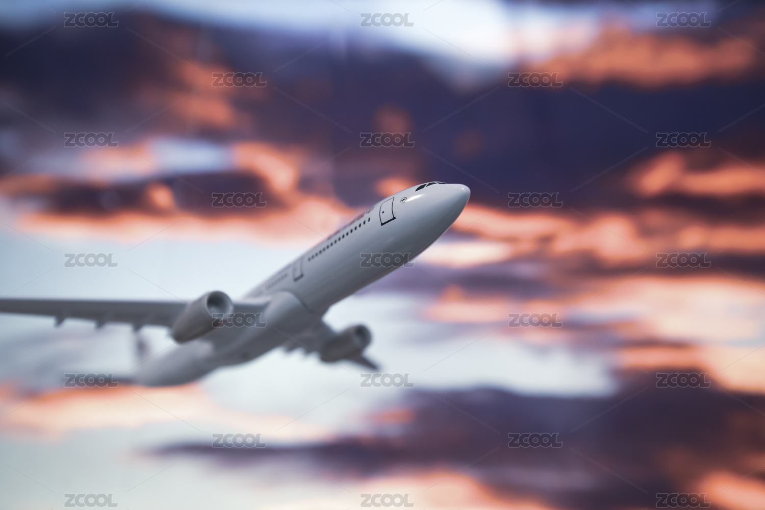 亚洲清晨空中飞行的客机和云景