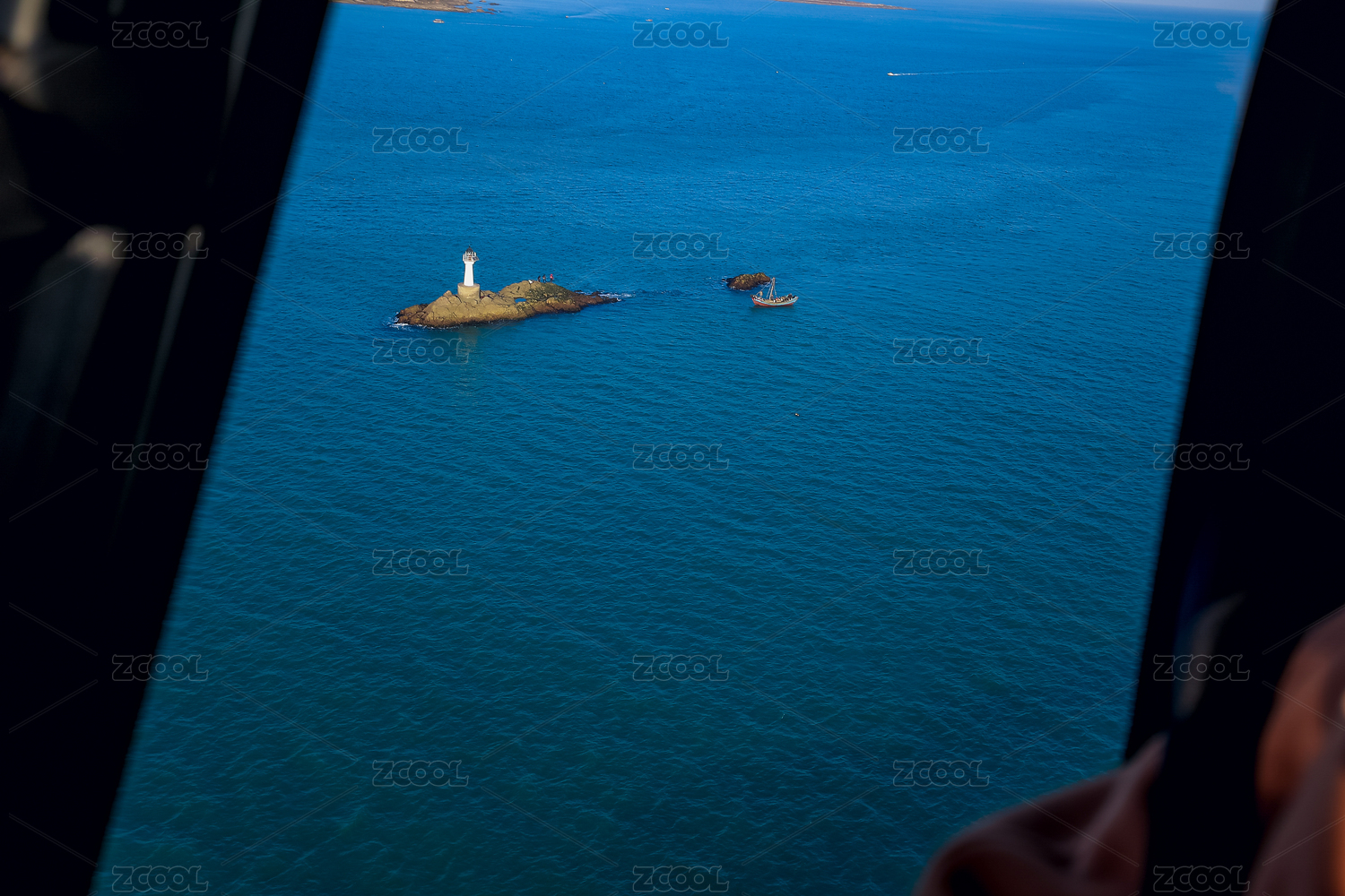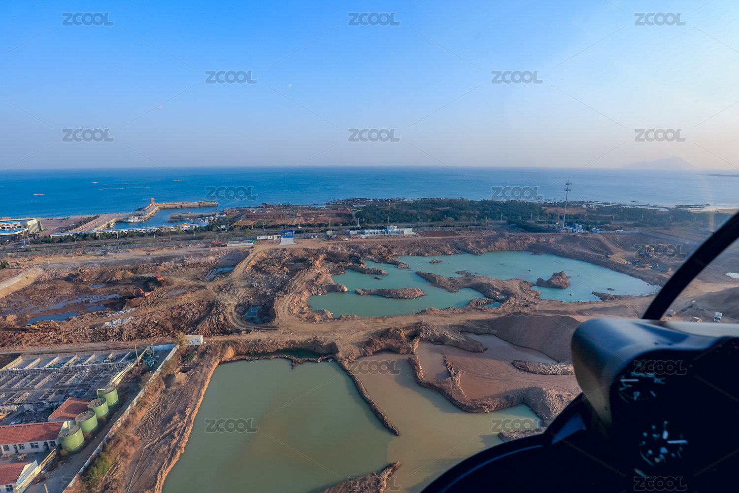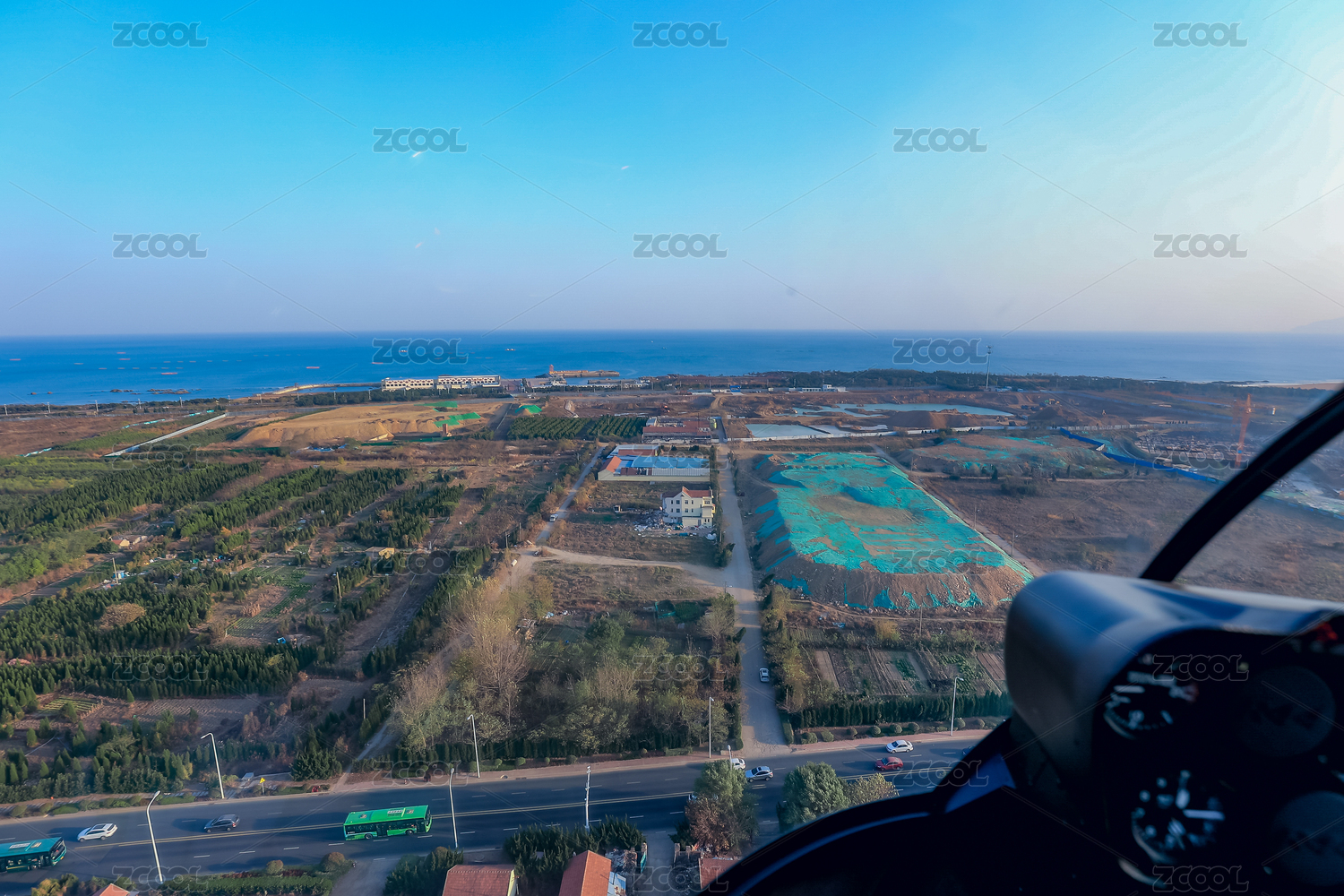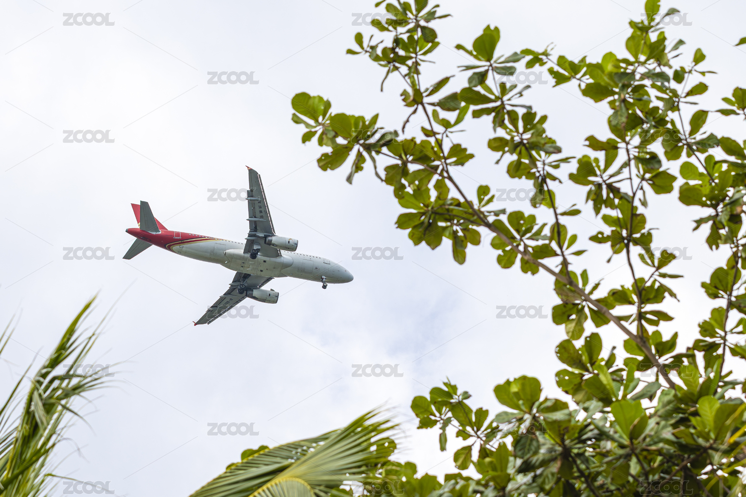空中飞行的飞机与绿植景观
