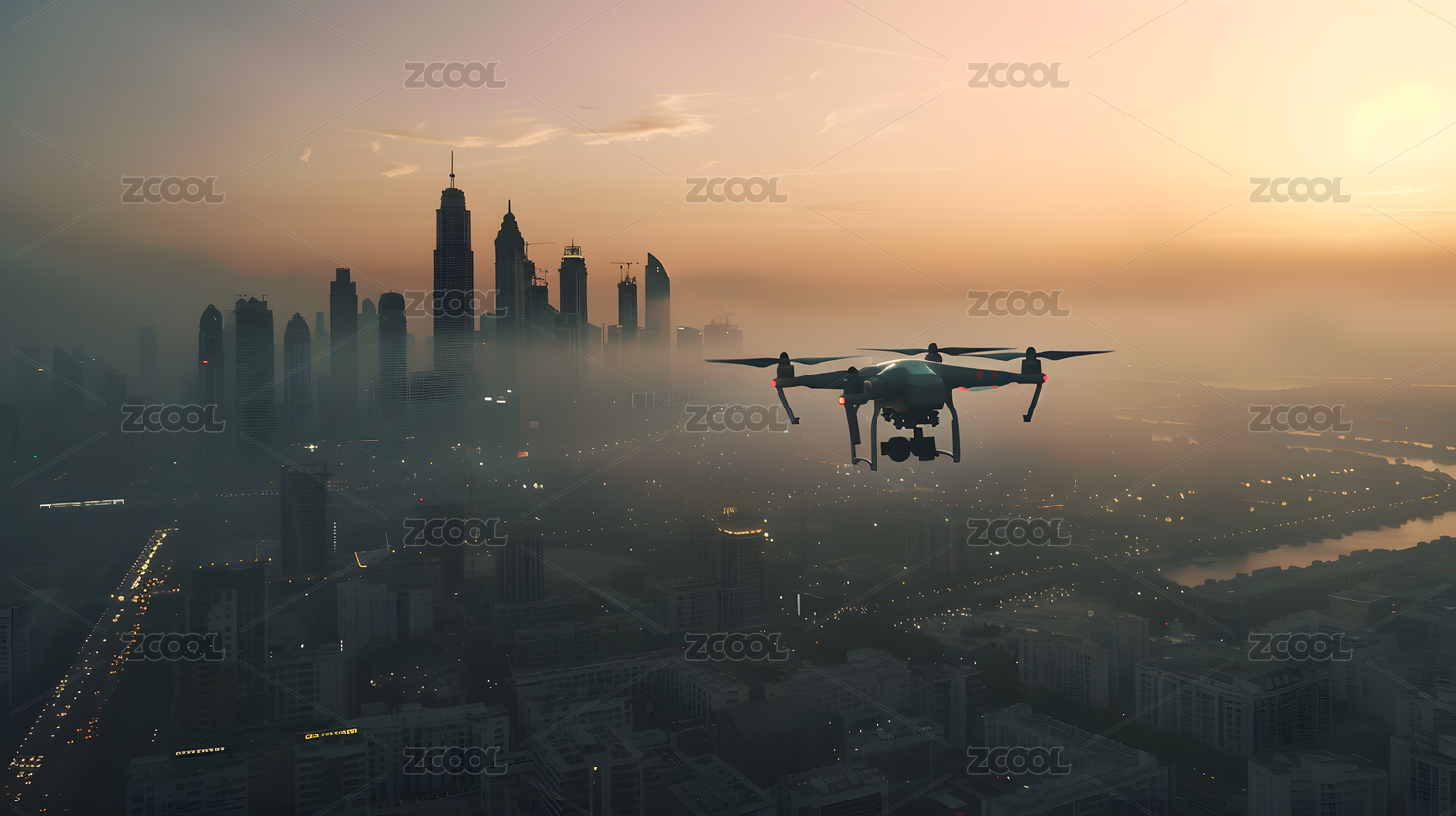 低空经济,无人机飞行在城市上空,新质生产