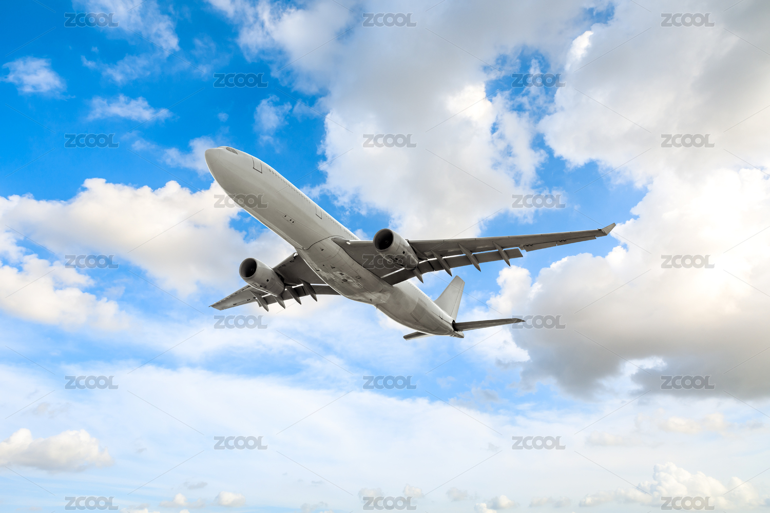 飞机在蓝天白云上空飞行