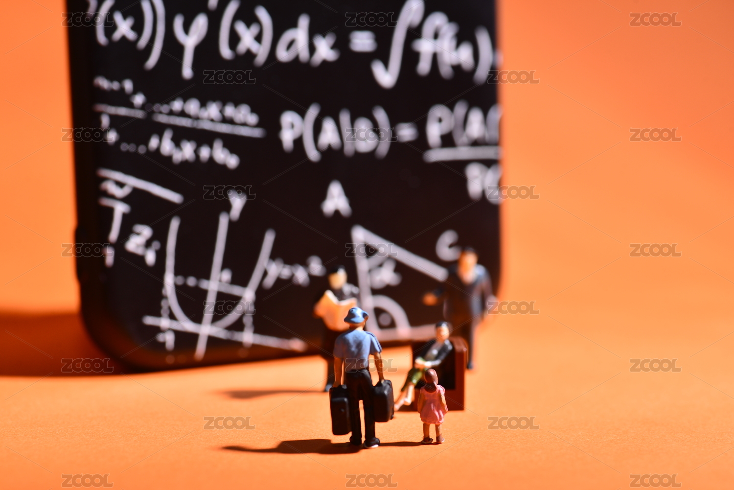 微缩创意摄影在黑板前面的学生