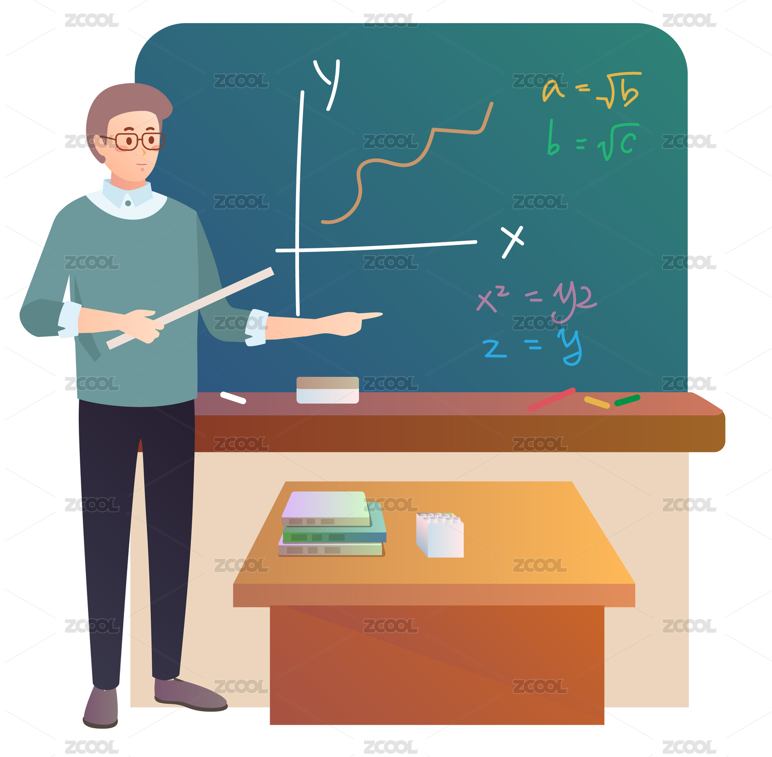 在黑板背景中心位置,一些卡通几何数学元素