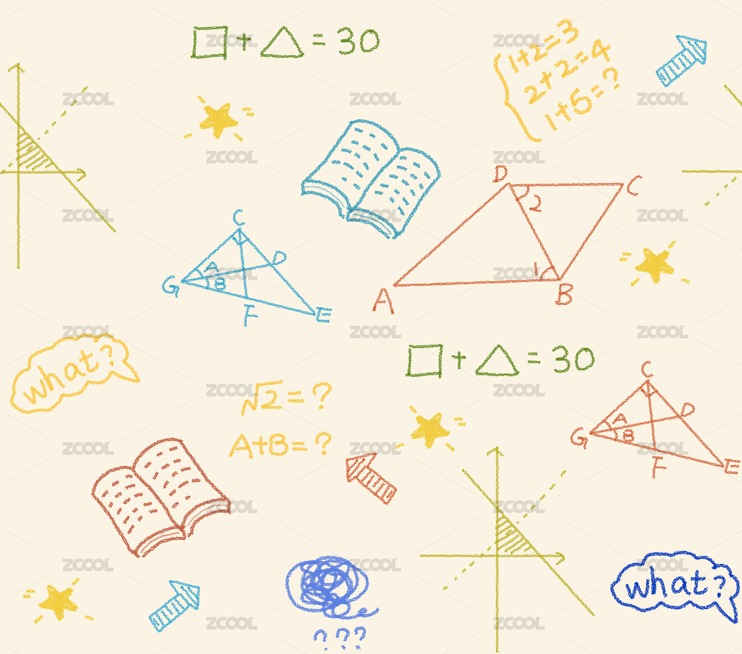 手绘数学几何图形和阿拉伯数字等元素组成的背景