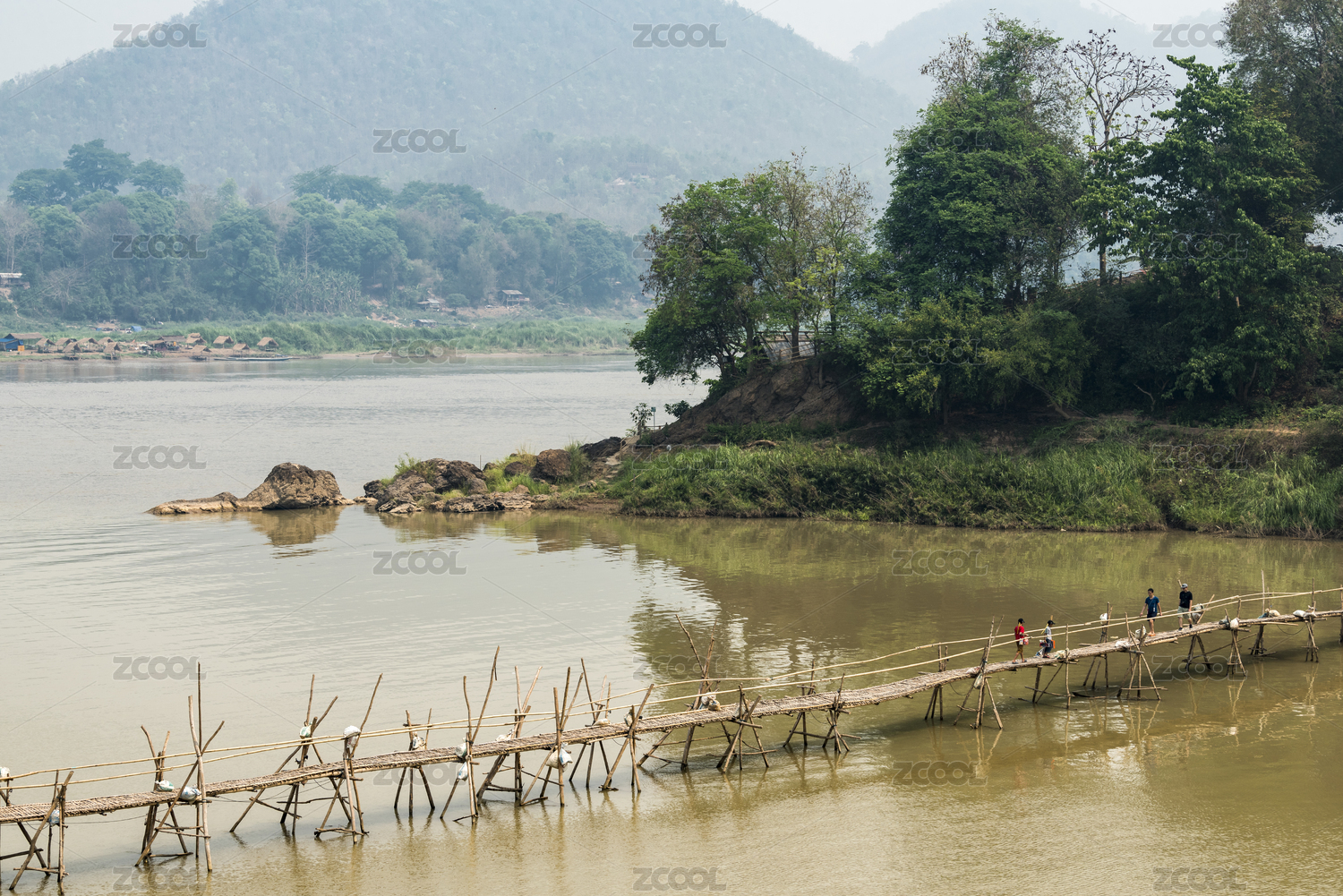 老挝琅勃拉邦湄公河与南康河交汇处的竹桥
