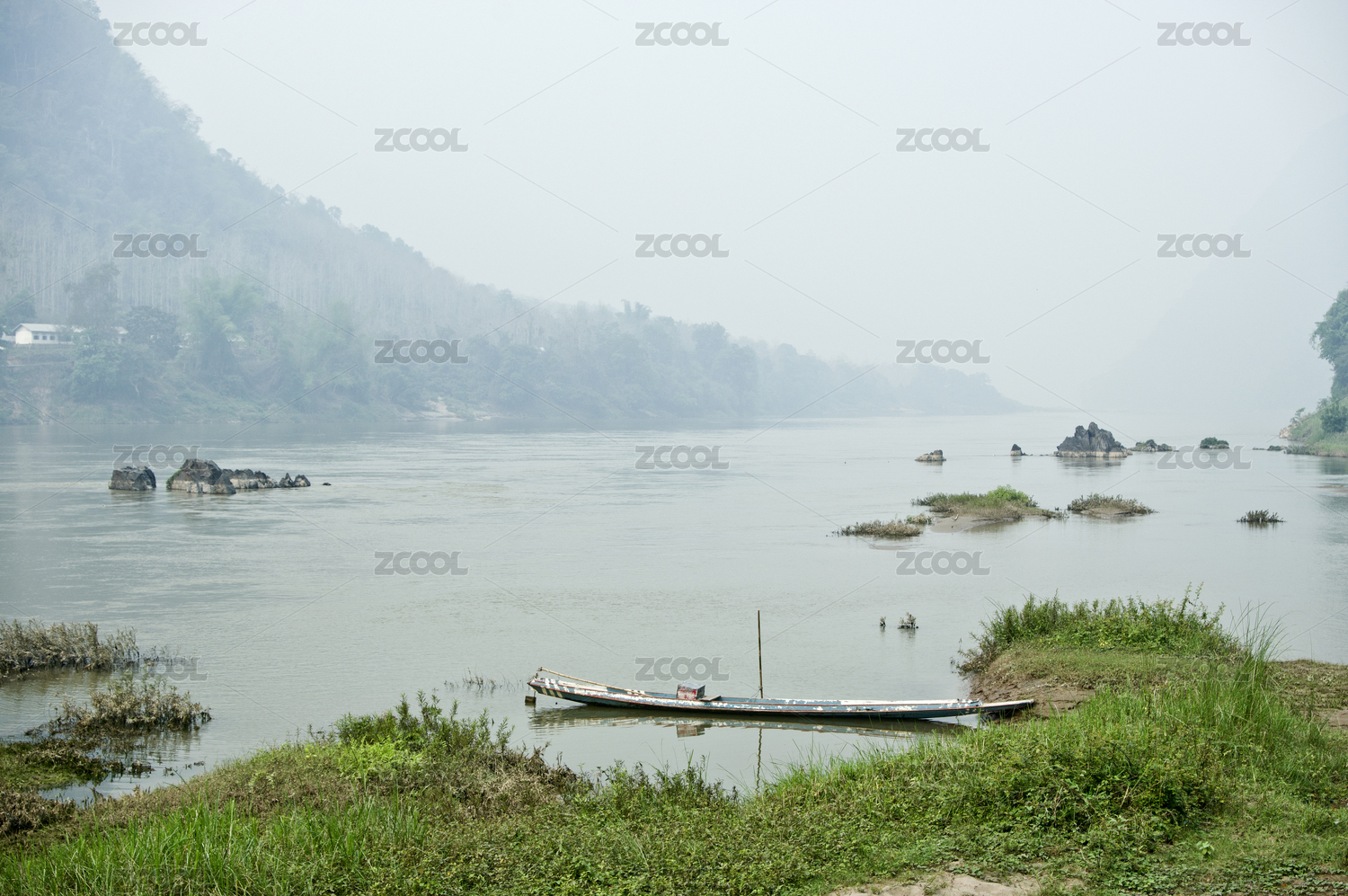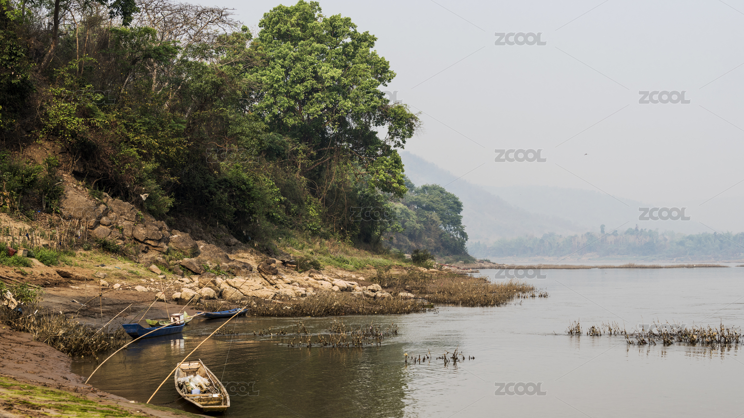 早晨老挝琅勃拉邦湄公河小景