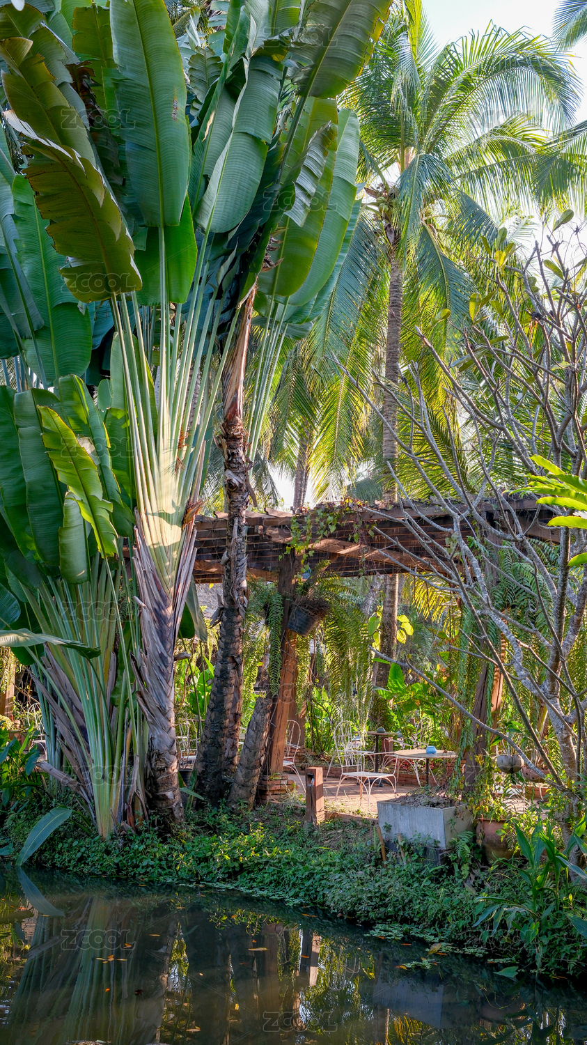 老挝琅勃拉邦著名旅游景点光西瀑布景区的溪流和古树