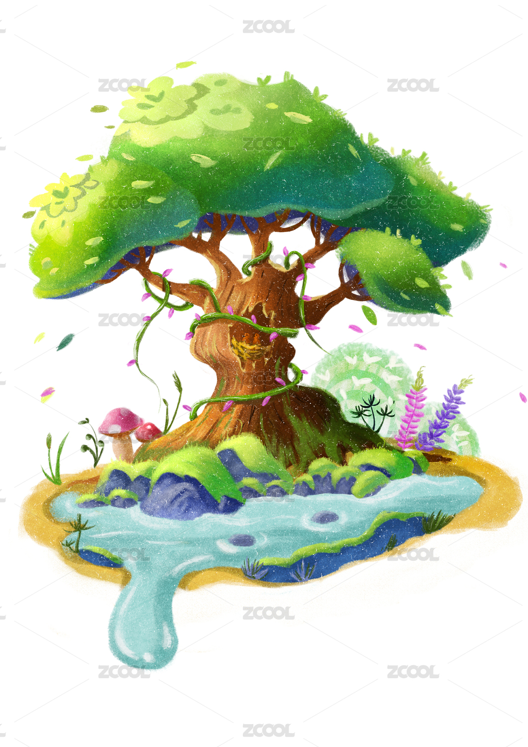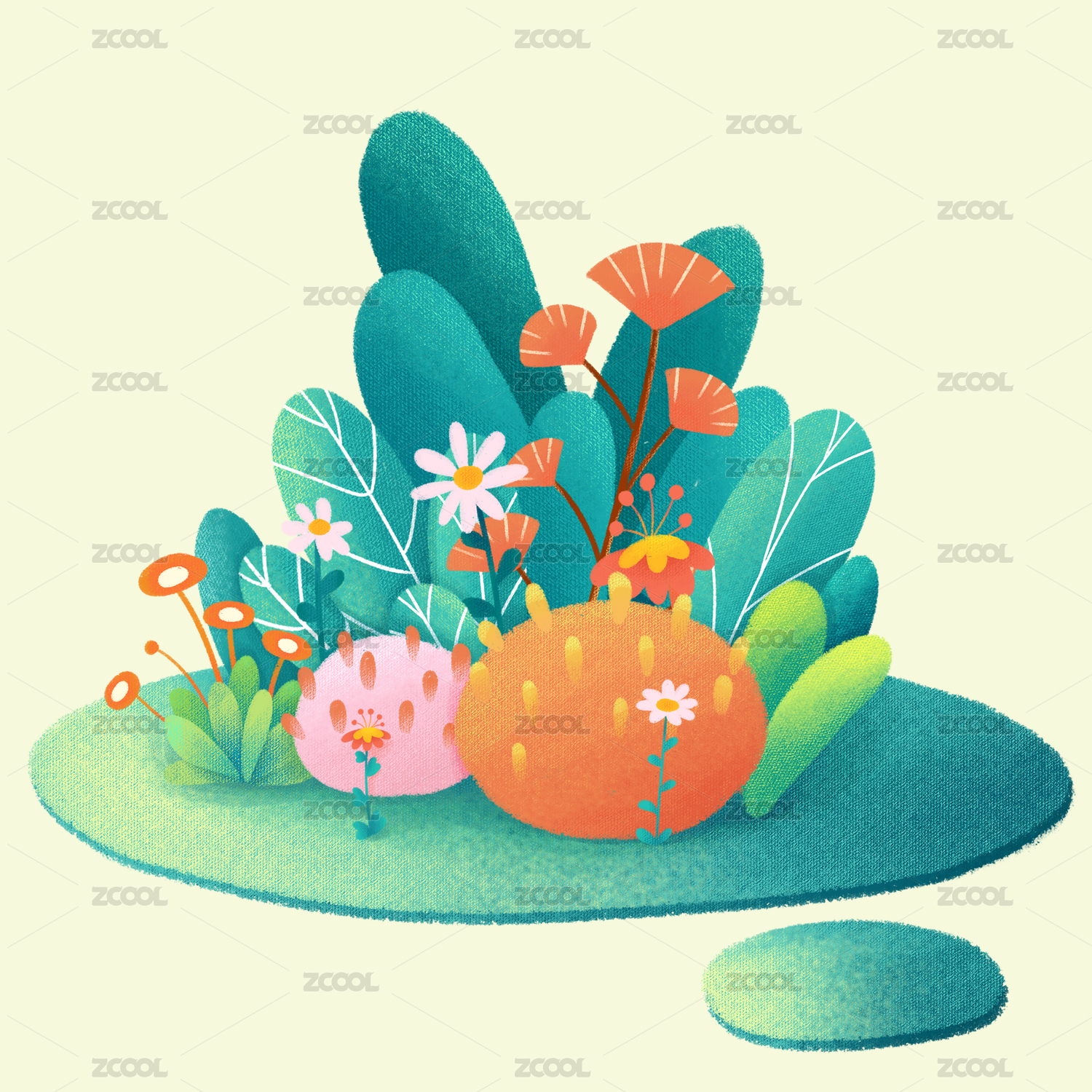 清新可爱卡通绿色花卉叶子植物绘本风插画