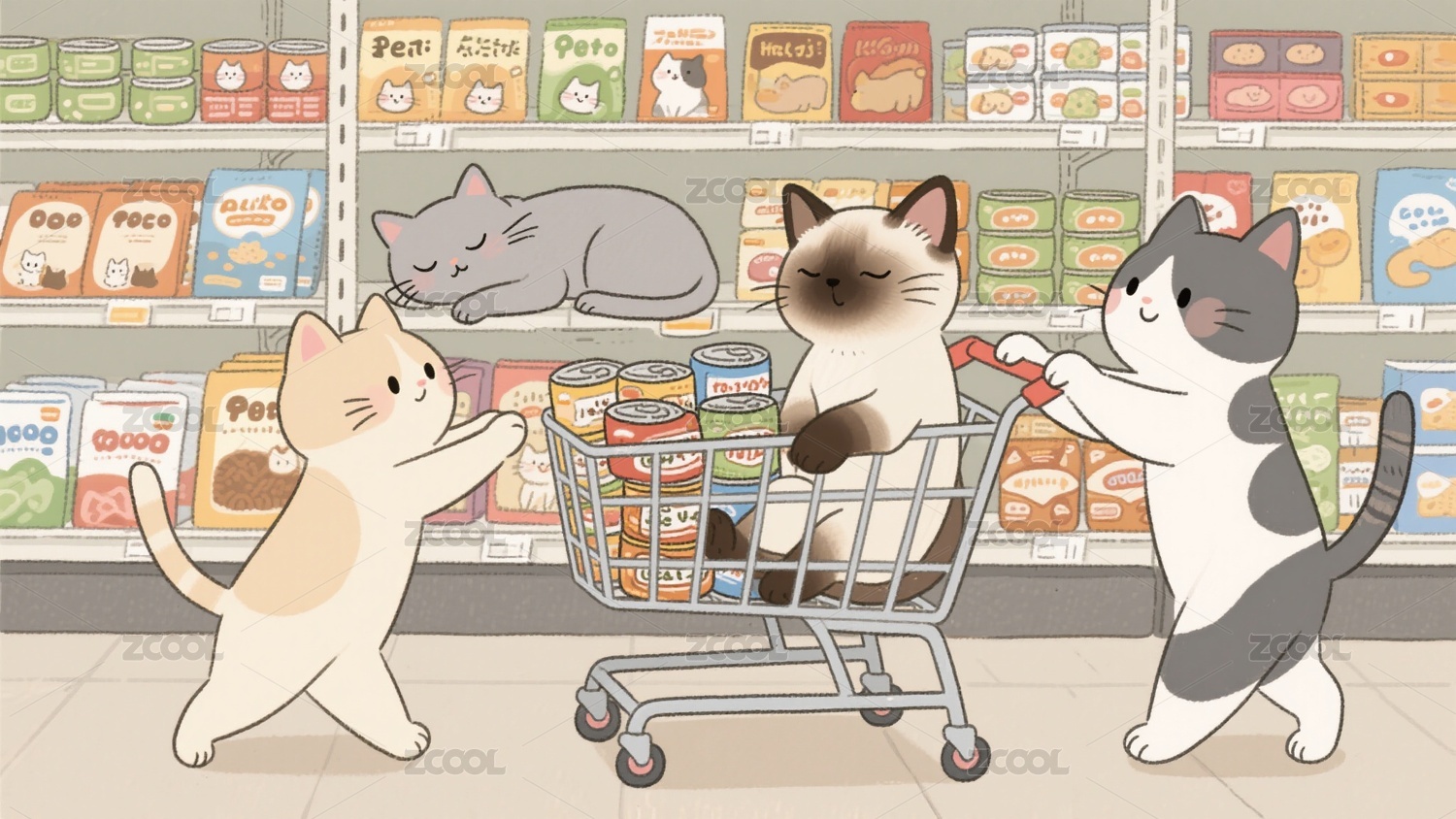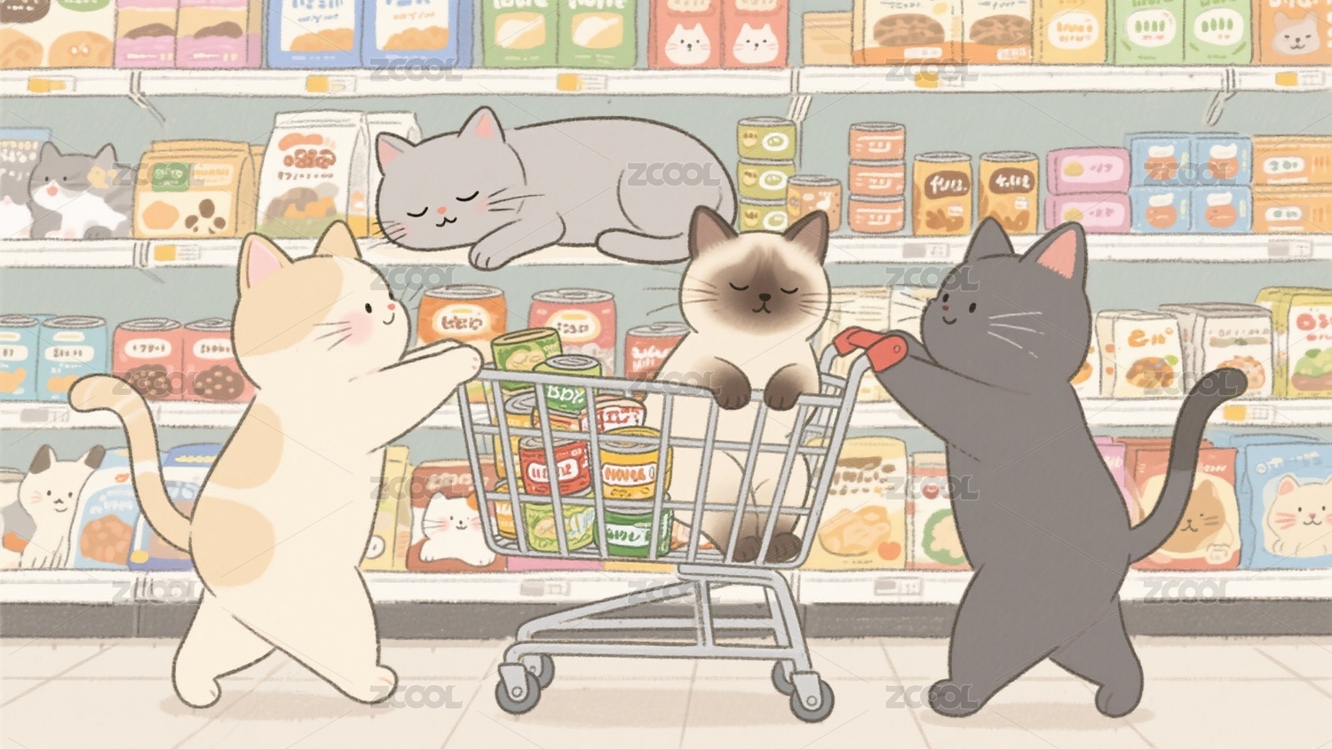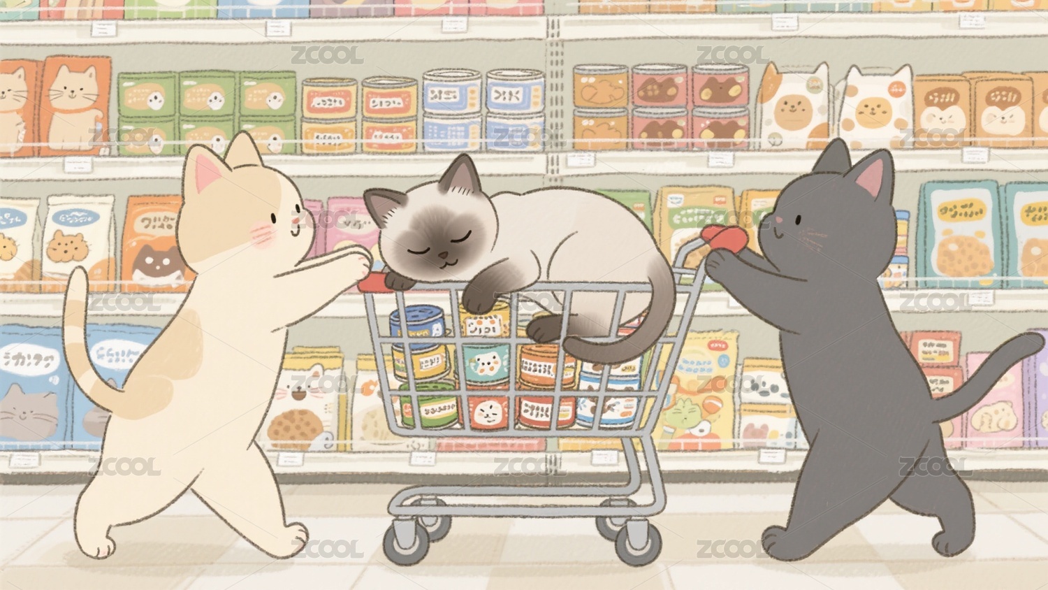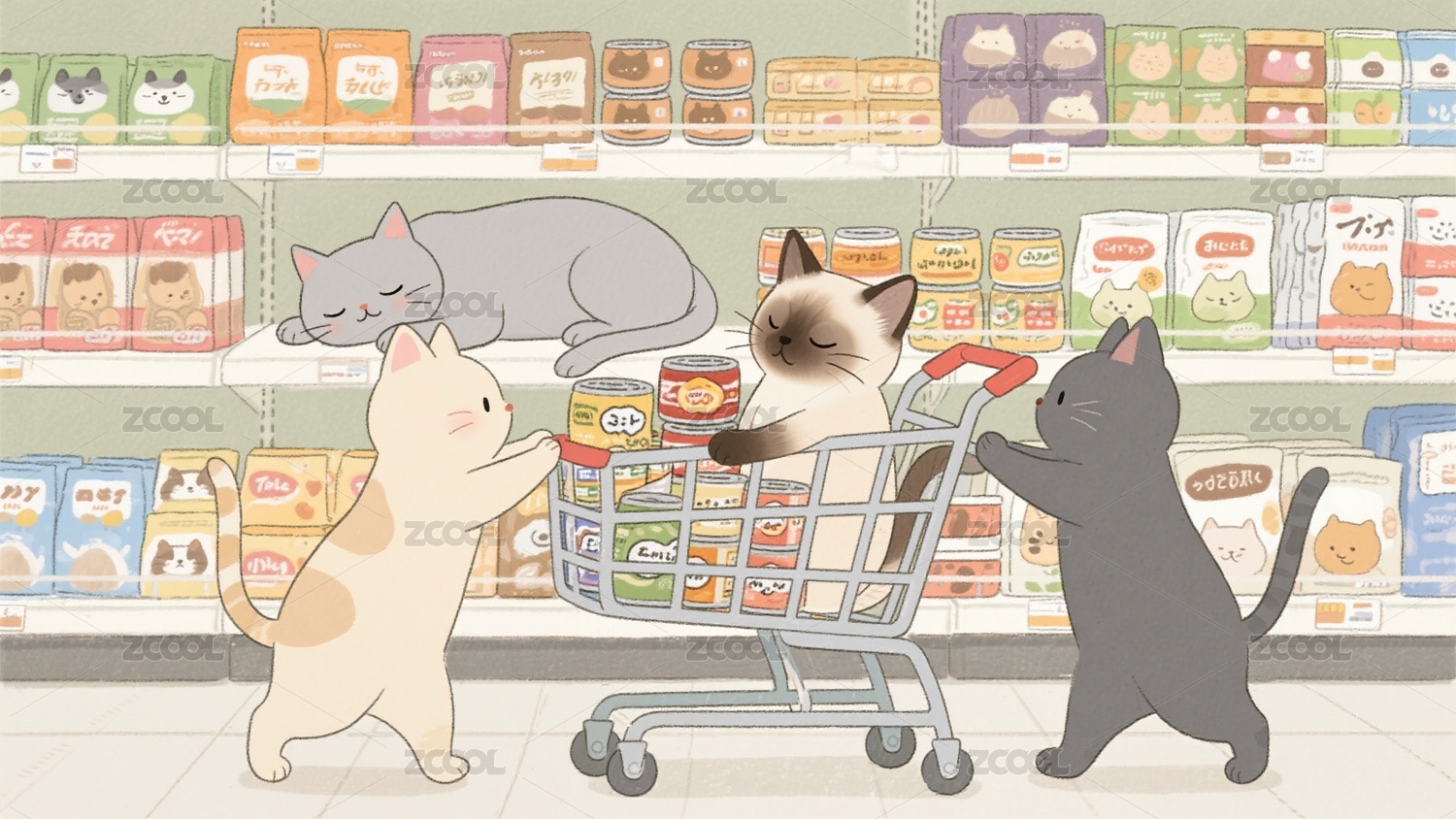 小清新简约可爱抱猫咪绘本风小女孩童话插画
