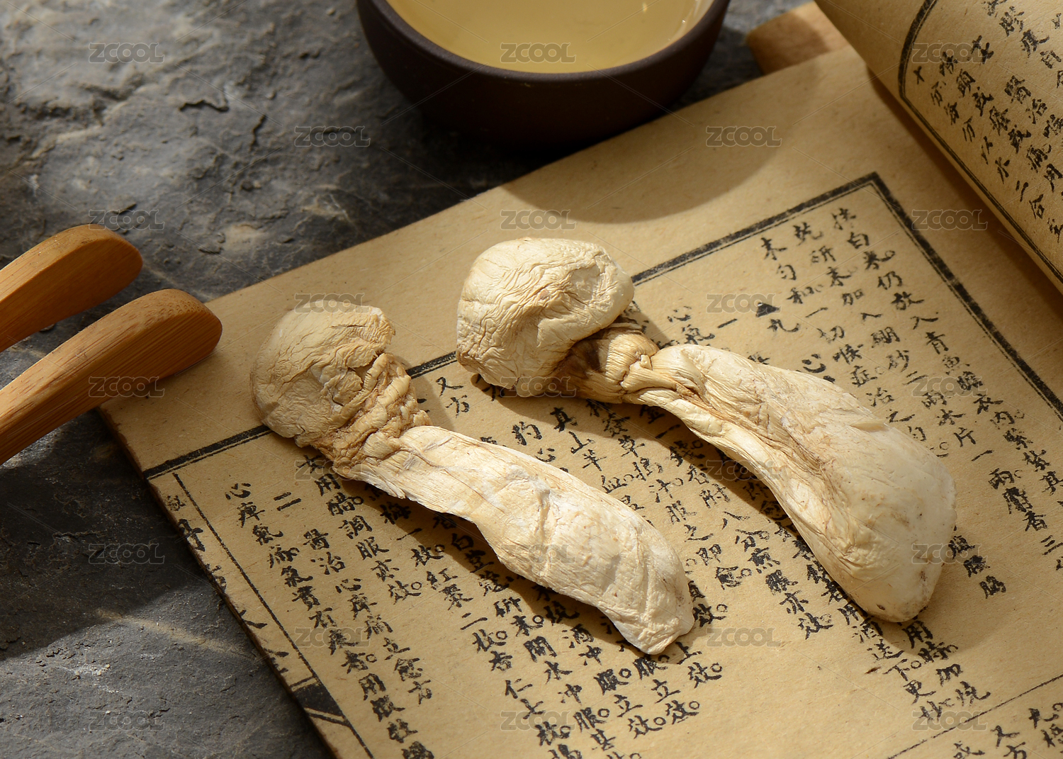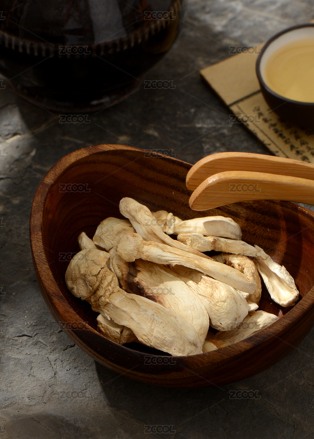 中式场景中摆放的野生松茸