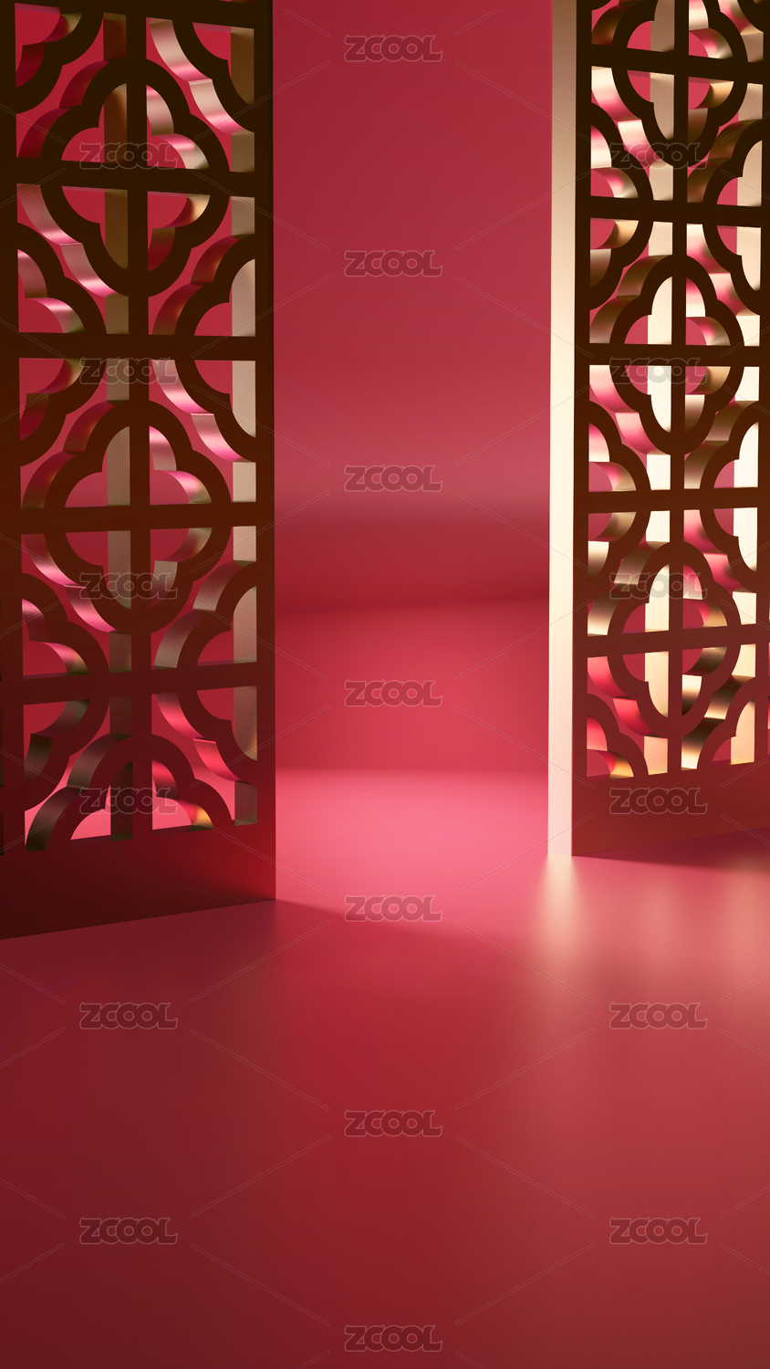 三维古典红色中式场景