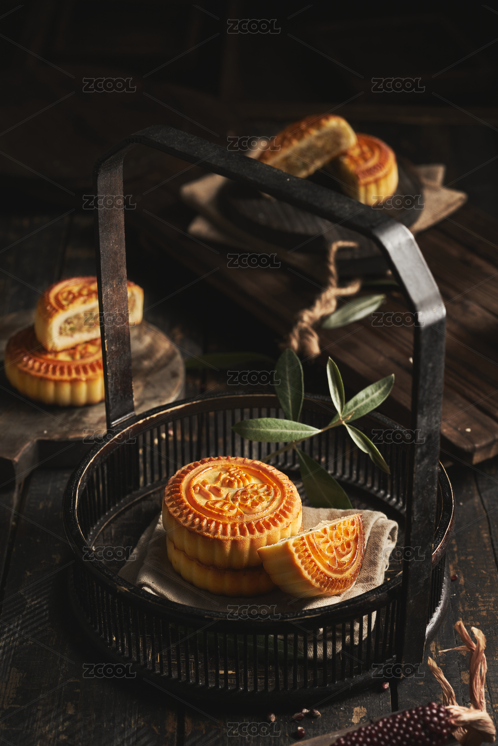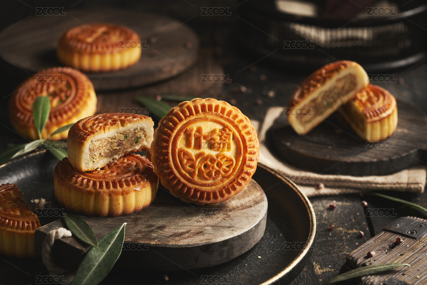 传统中秋月饼中式场景