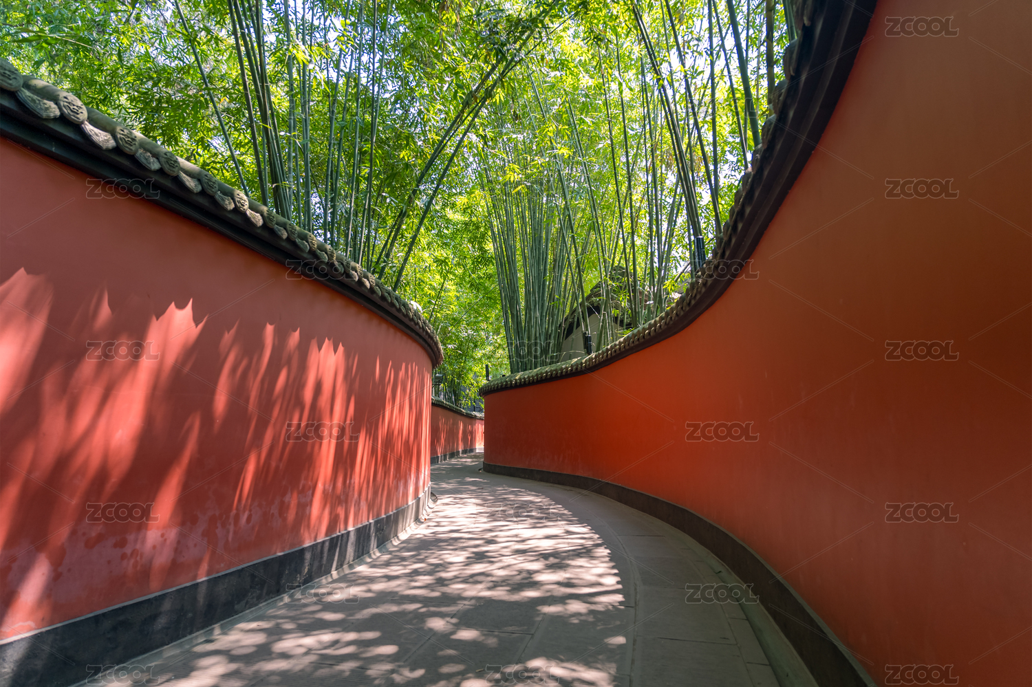 成都武侯祠博物馆红墙竹林小路中式场景