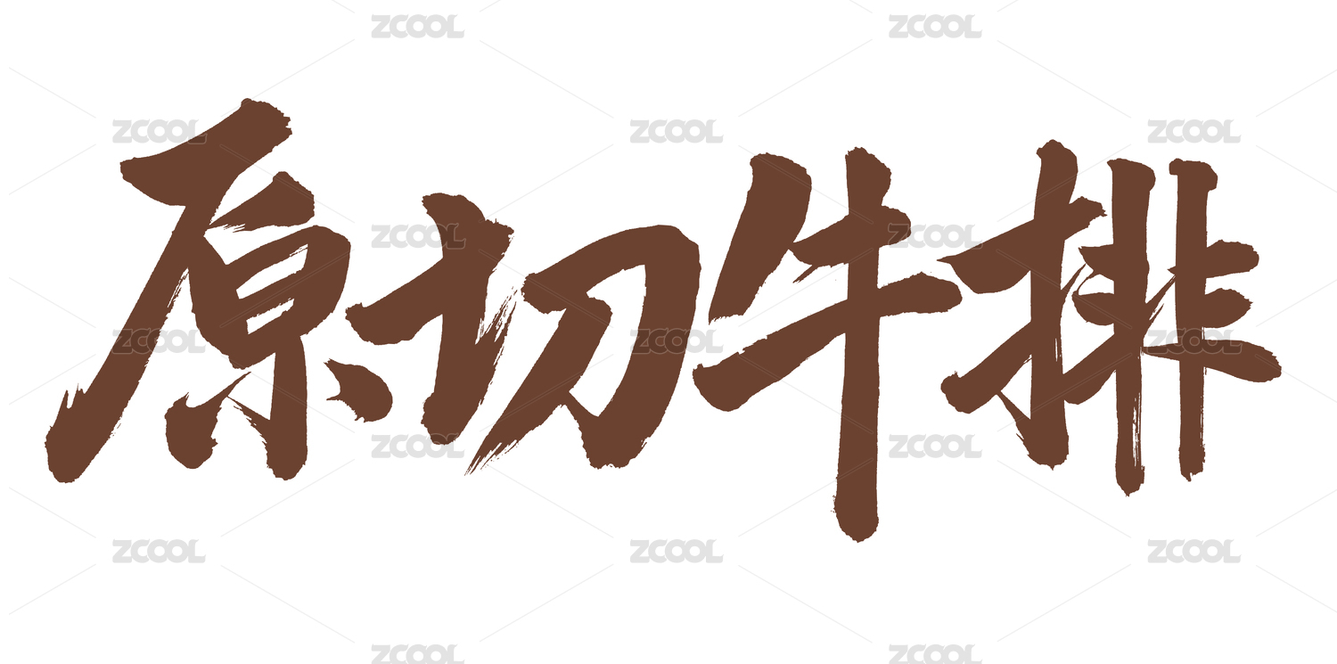 原切牛排矢量书法手写毛笔字