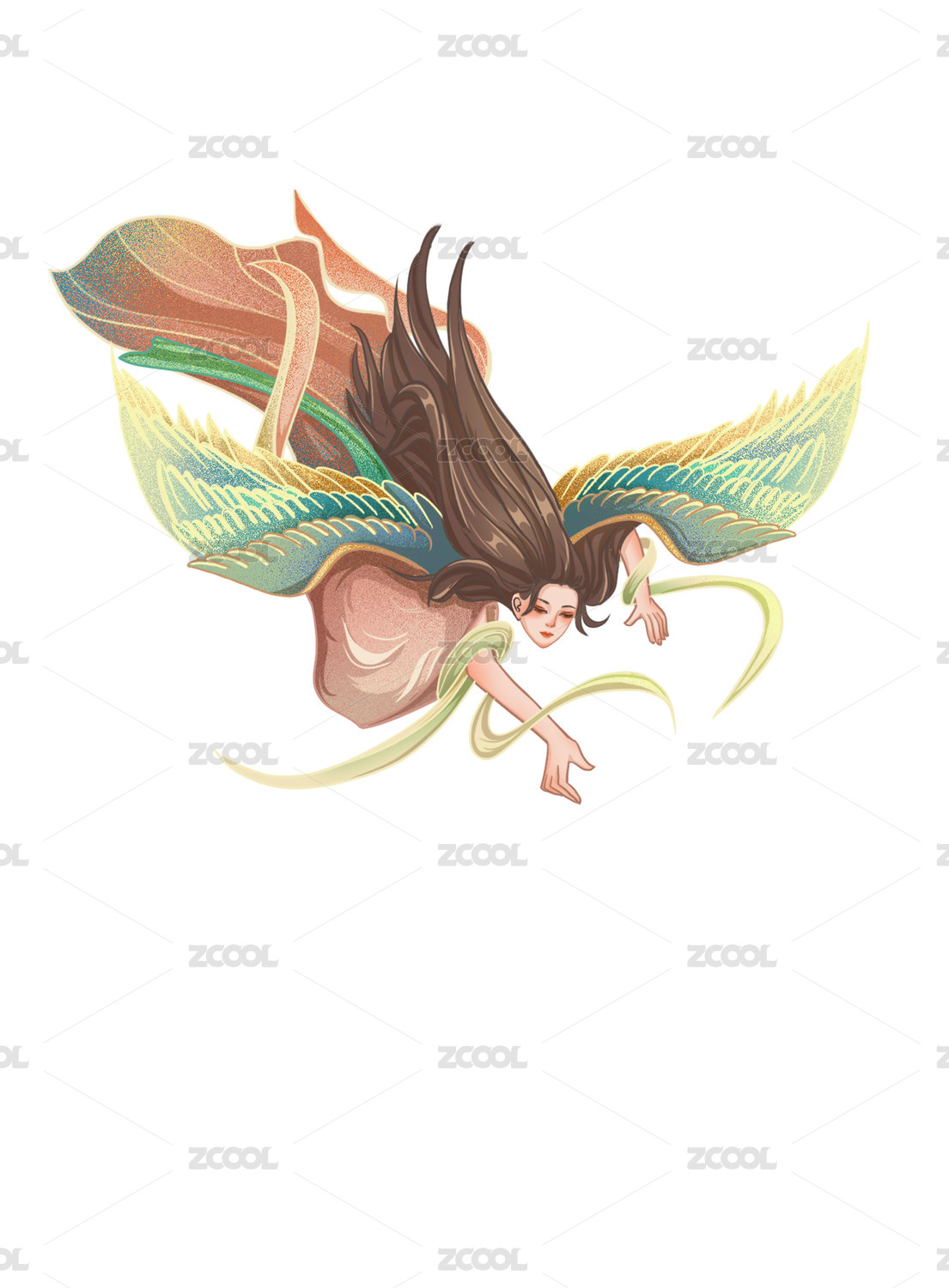 矢量中国神话故事山海经可爱国潮工笔画精卫