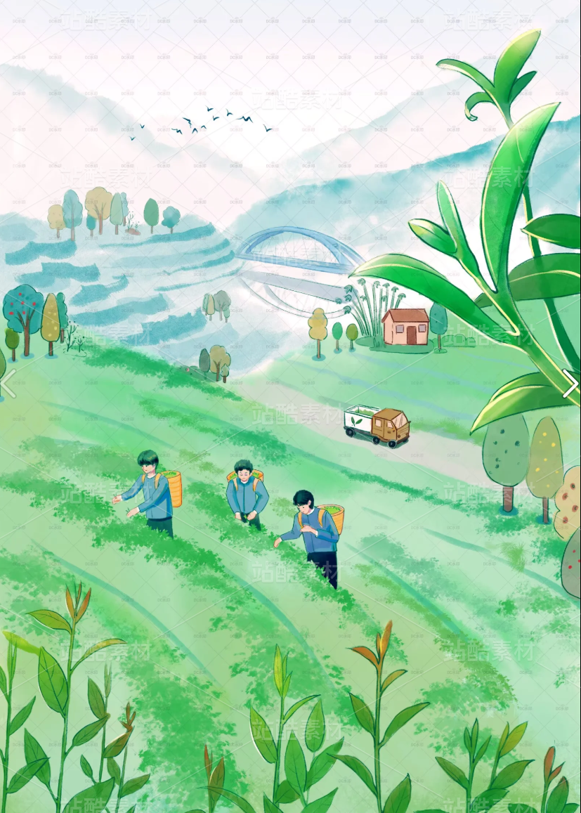 现代水彩-采茶背景
