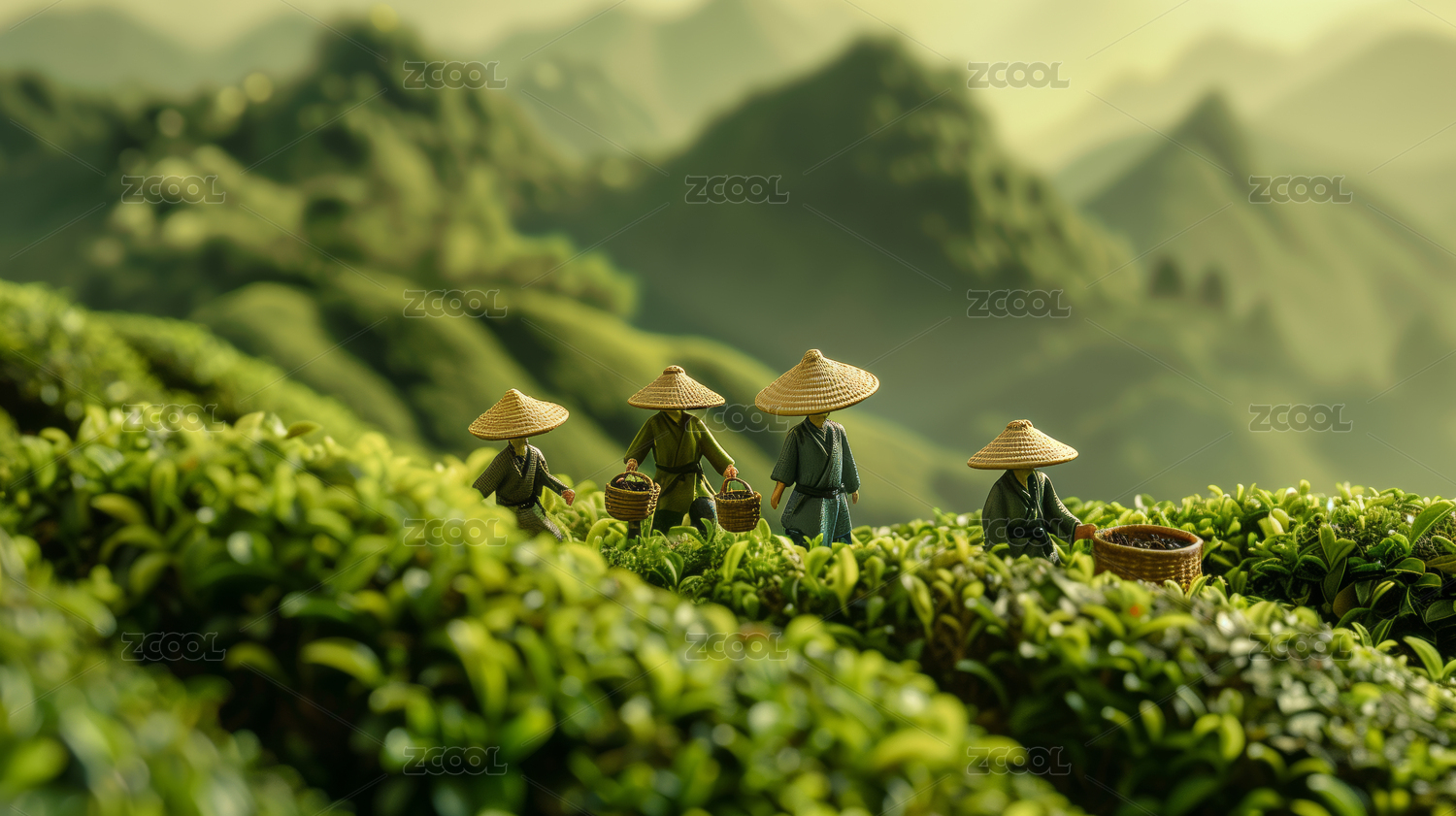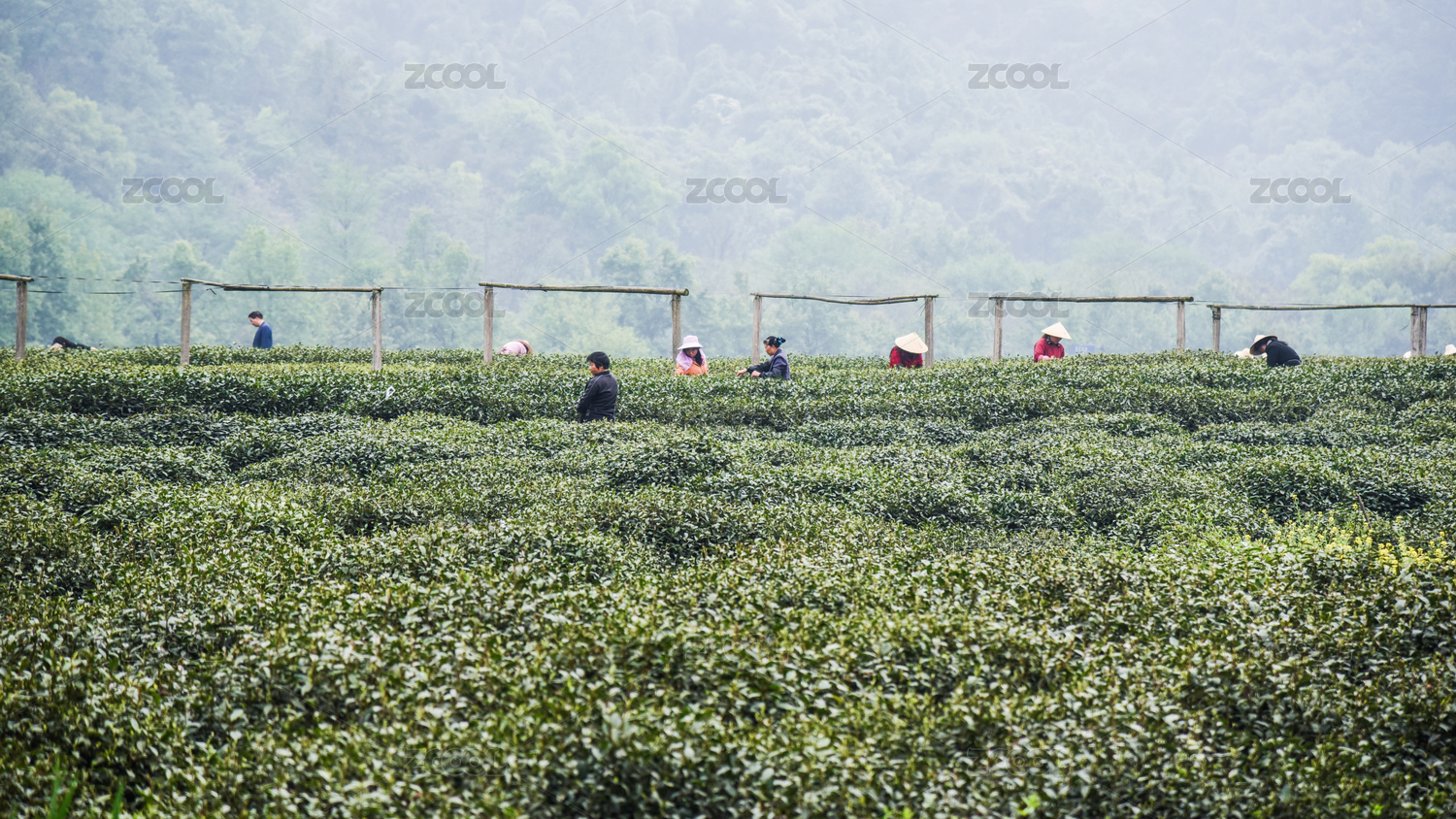 茶田采茶叶的人物