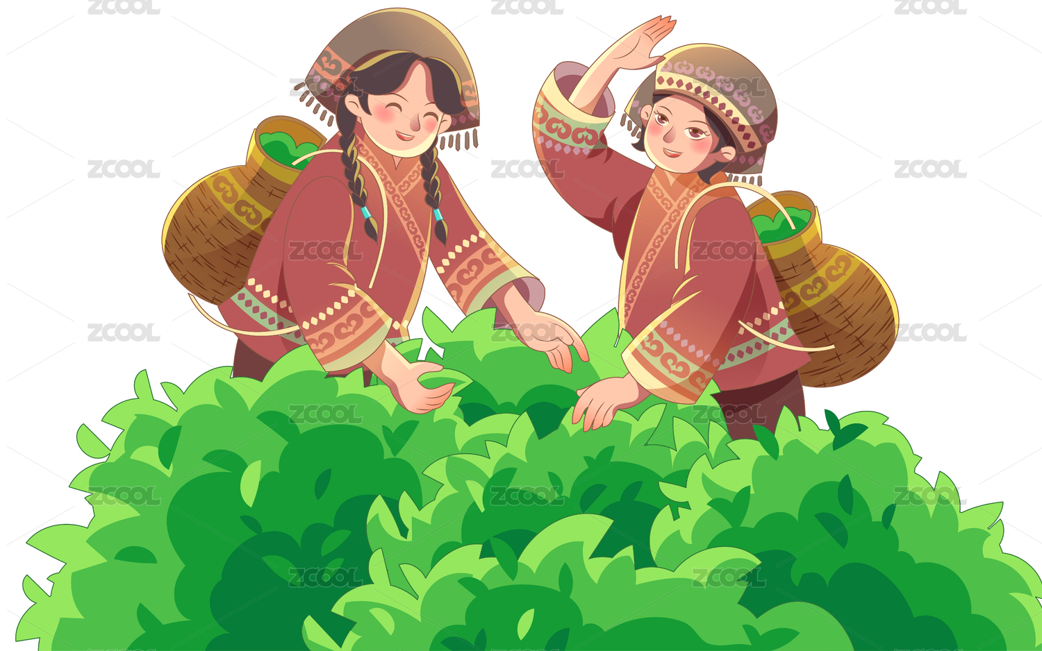 采茶的人矢量插画