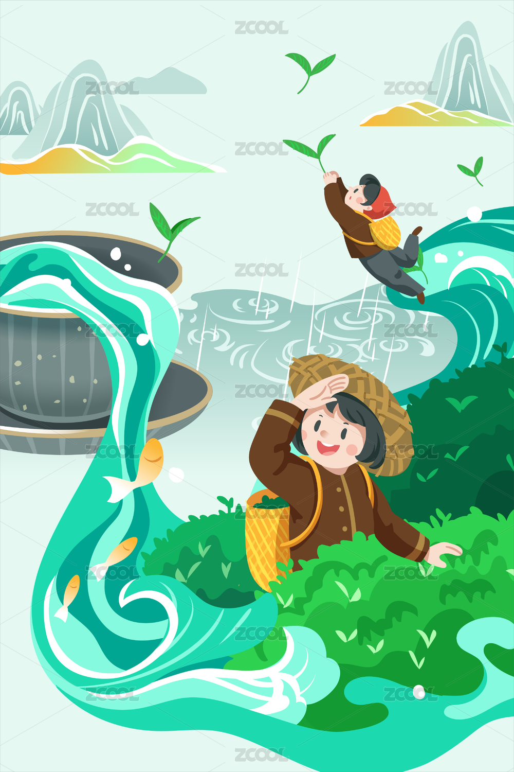 谷雨采茶插画