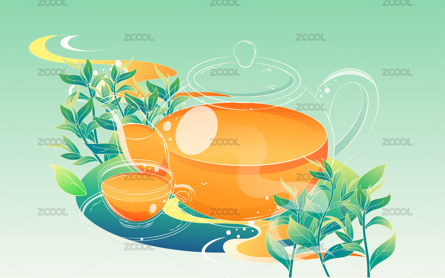 采茶人背景矢量插画