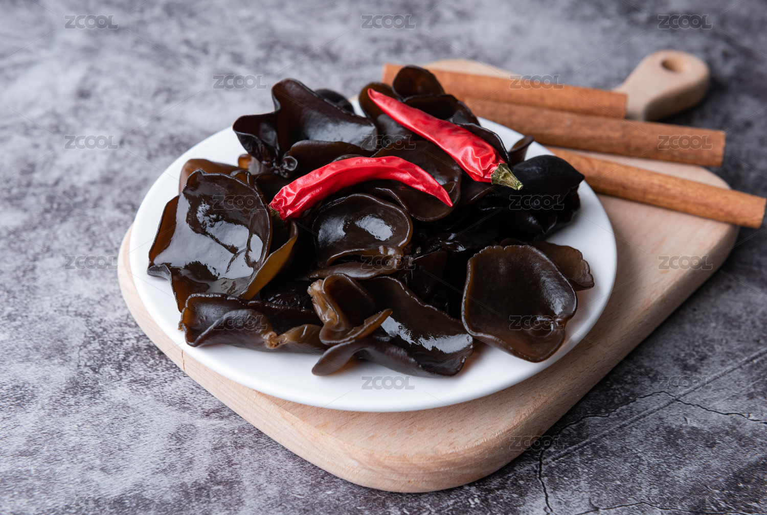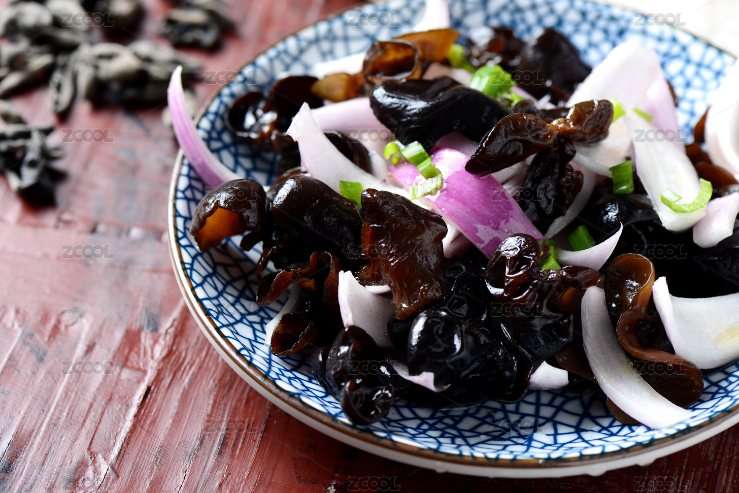 桌面上的盘子里的美味可口的黑木耳