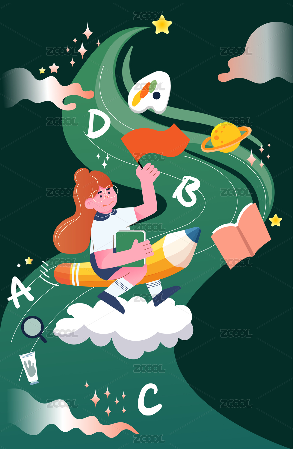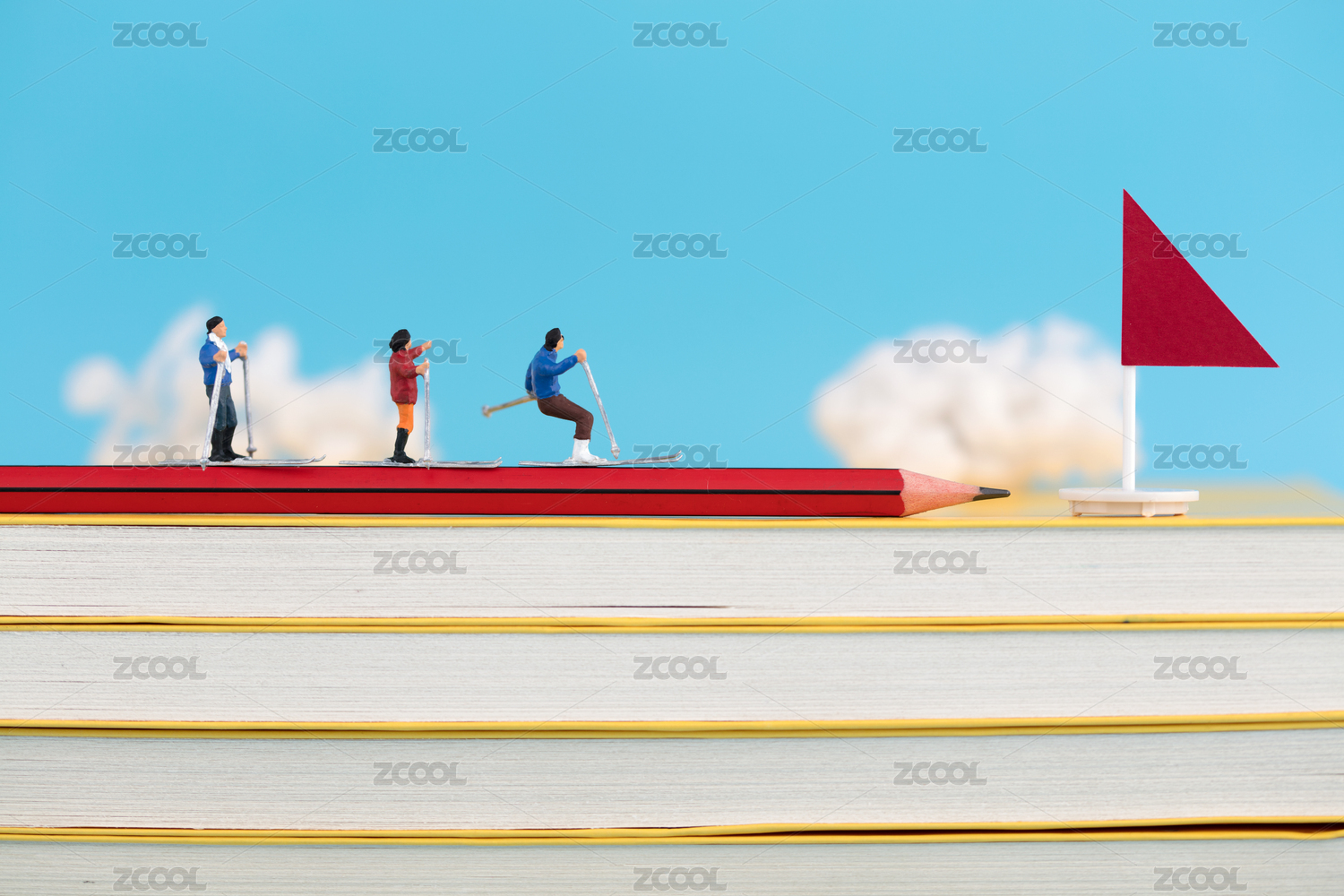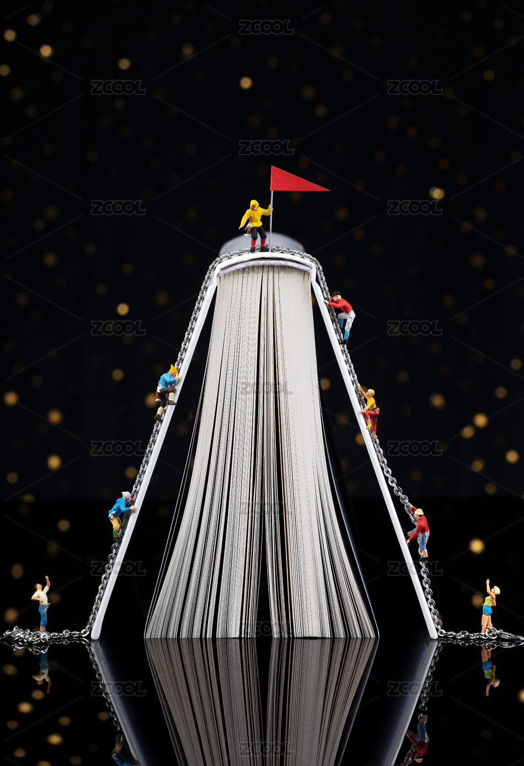在书本上攀登徒手向着目标攀岩的人群到达知识的顶峰