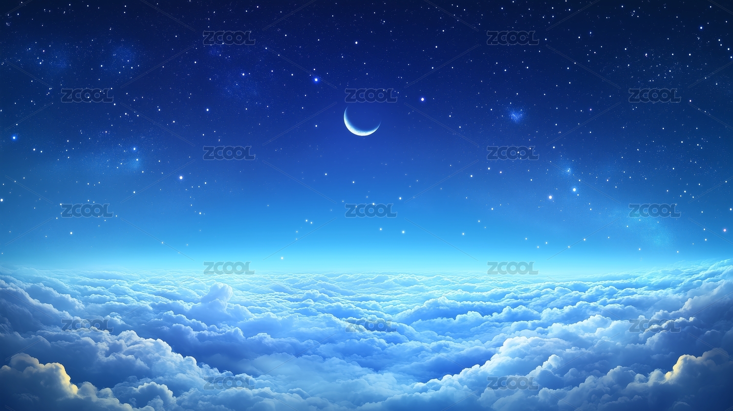 星空下,栏杆前的长椅,深蓝色动漫风格插画