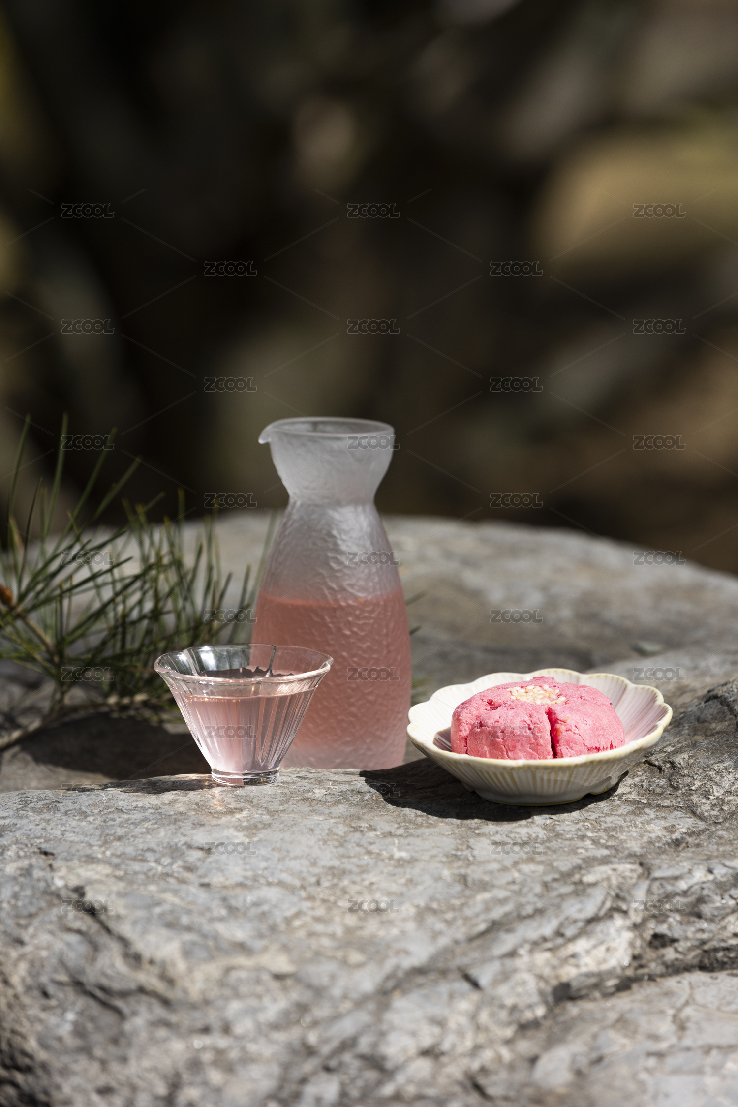 盛放果酒的陶瓶和成熟的黑色桑葚
