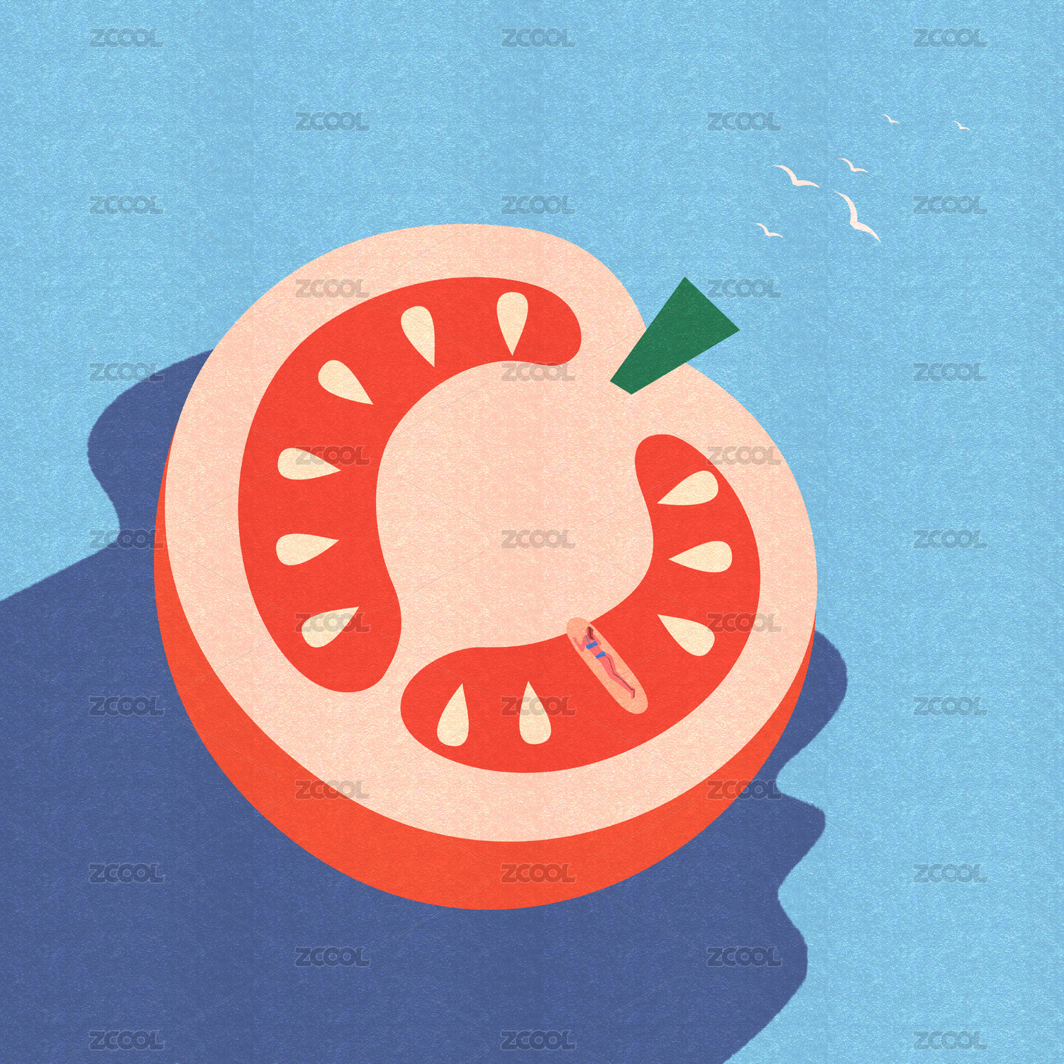 小暑节气人物吃西瓜度假娱乐休闲水果插画