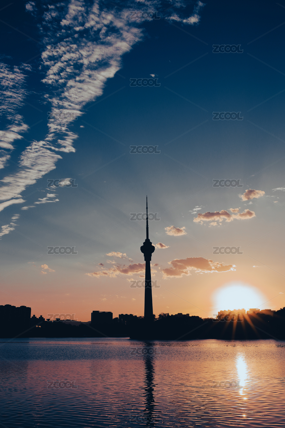 北京玉渊潭公园中央电视塔晚霞