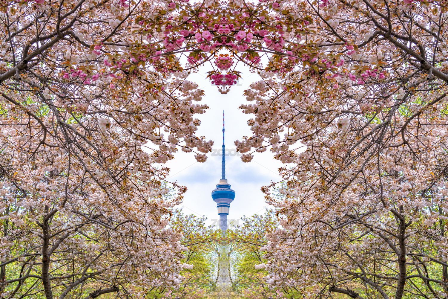春日中国北京市中央广播电视塔玉渊潭公园的樱花