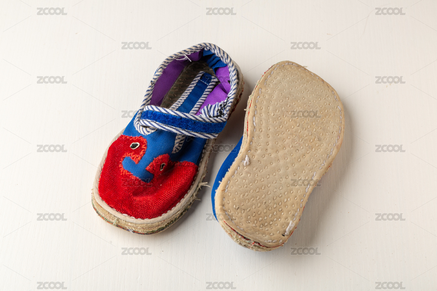 一双传统的民间千层底粗布鞋