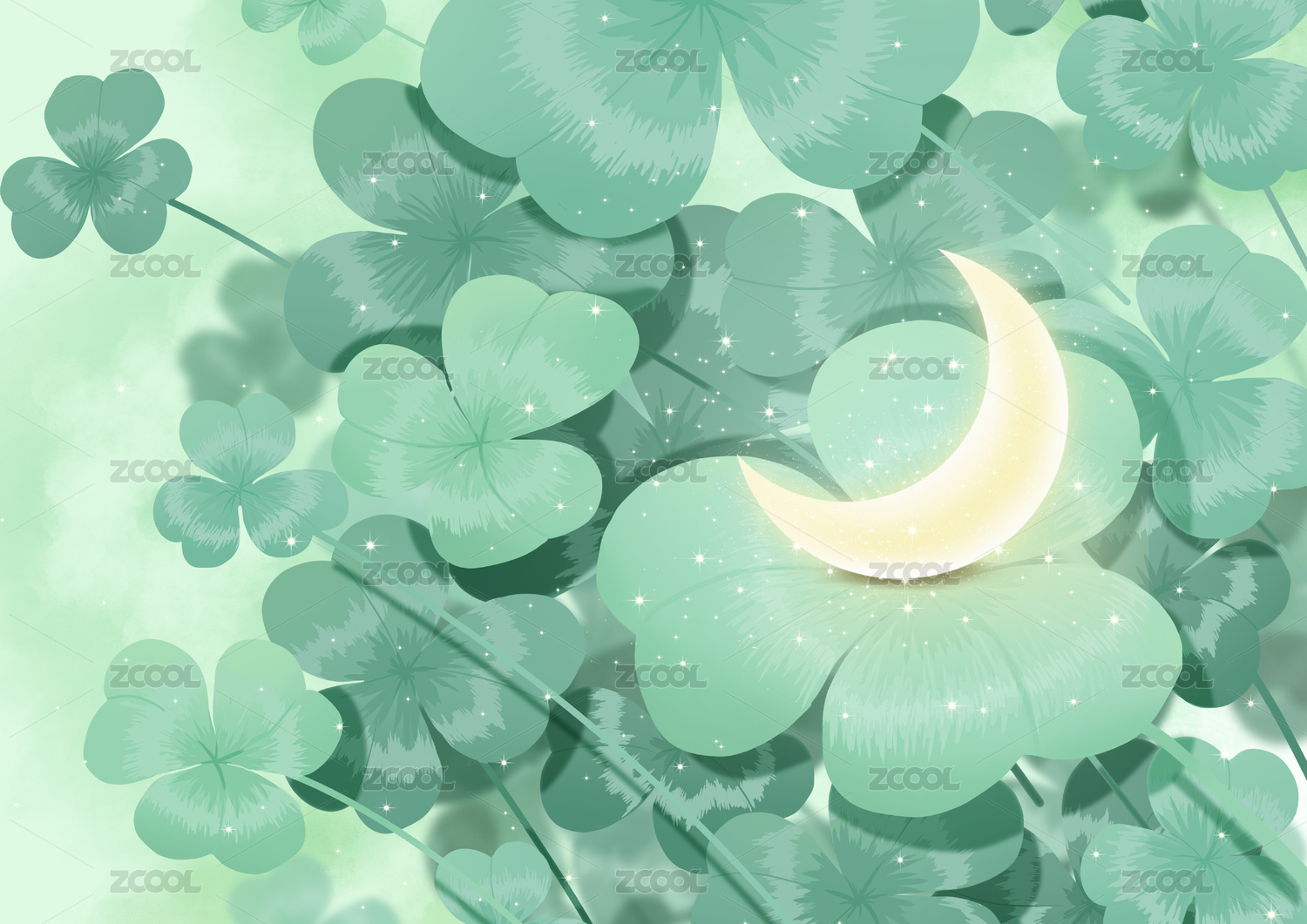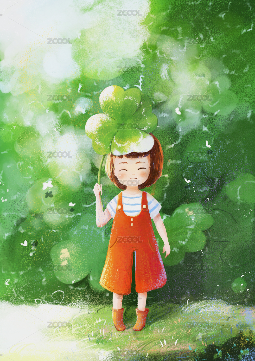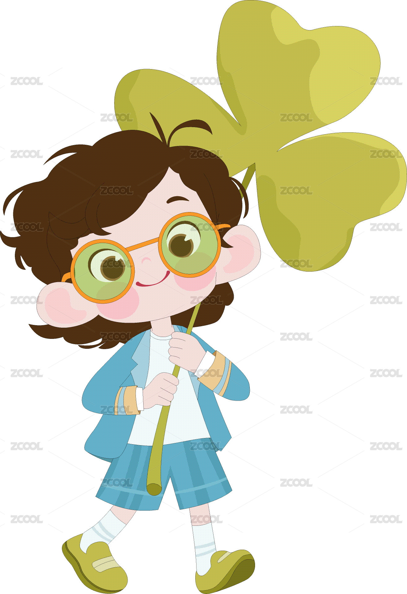 卡通可爱男孩拿着四叶草幸运草儿童教育插画