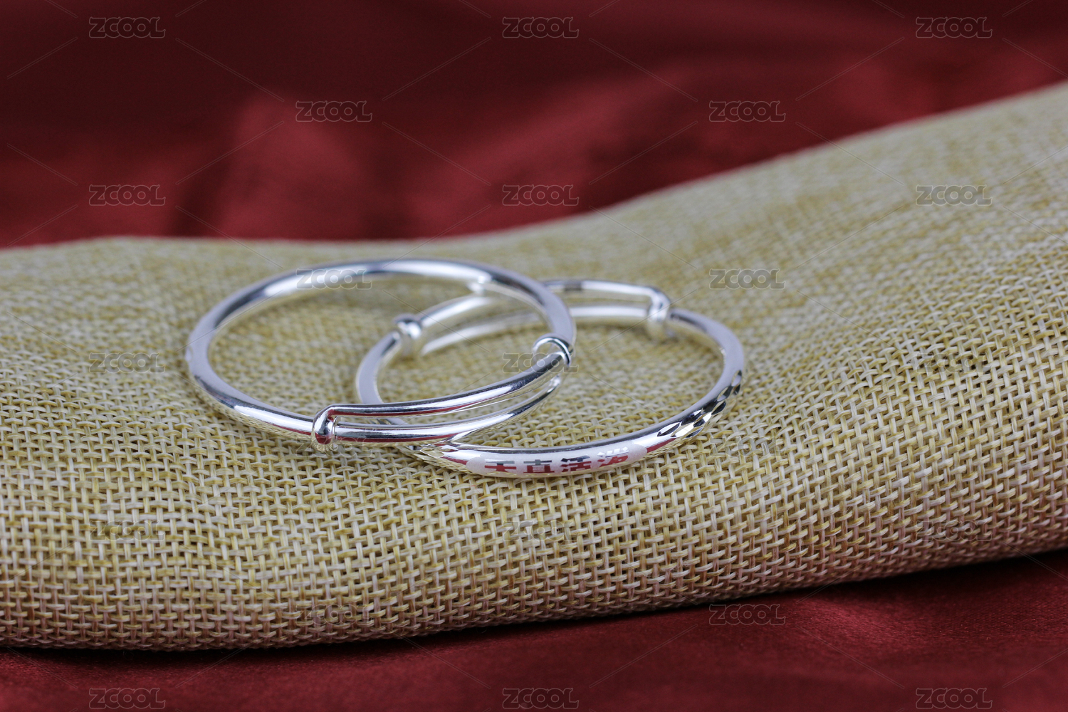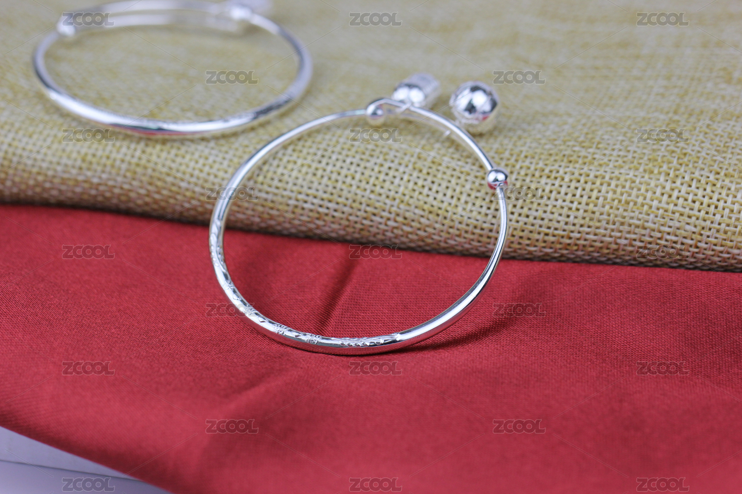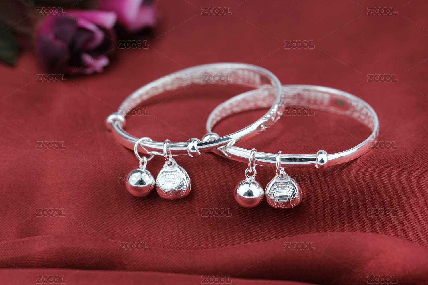 纯银儿童首饰手镯对镯银饰品电商实物图