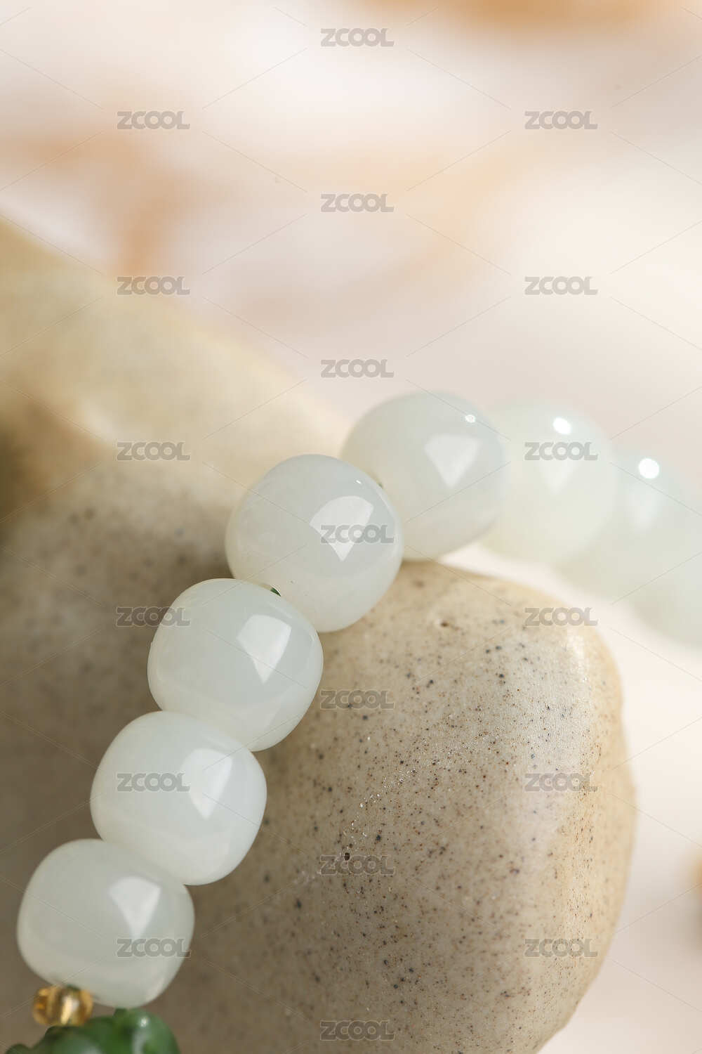 中国风天然石手串放在石头上特写