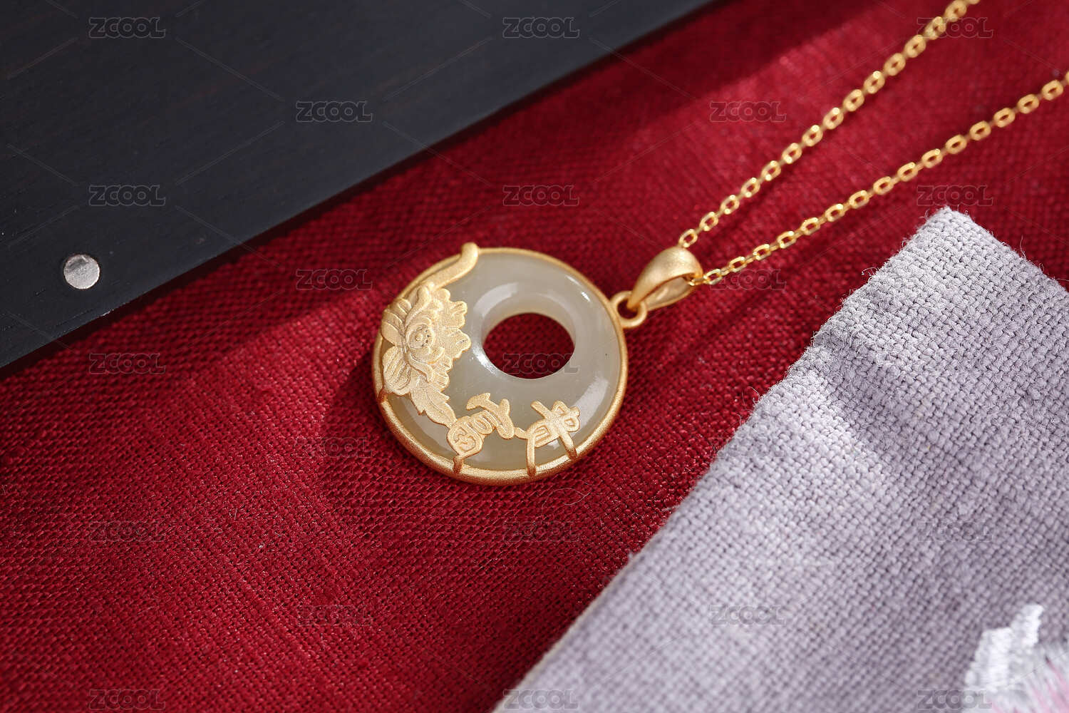 中国风红色场景天然石银饰耳坠在饰品盒上