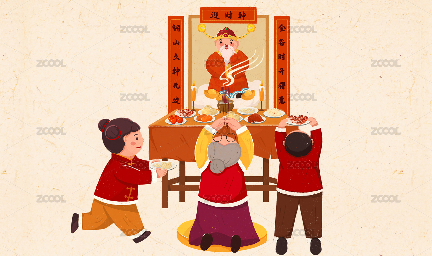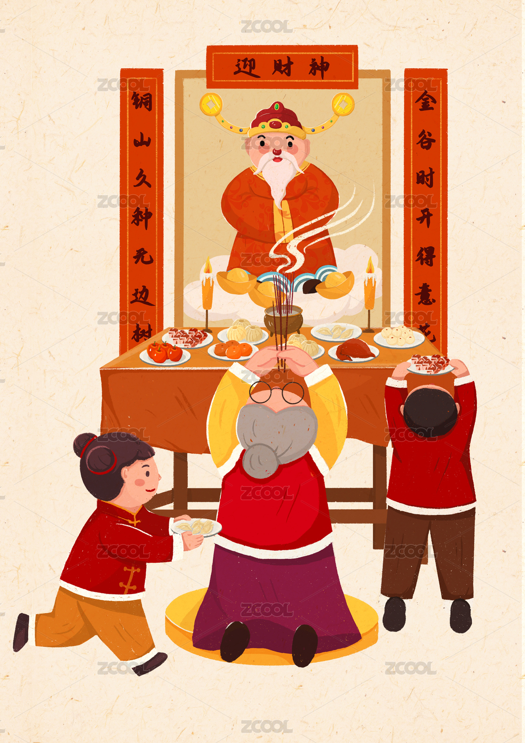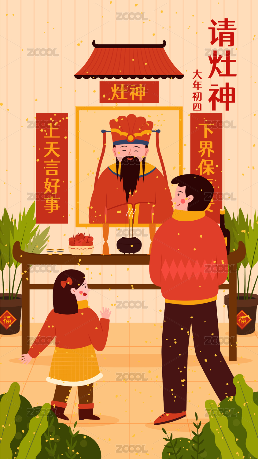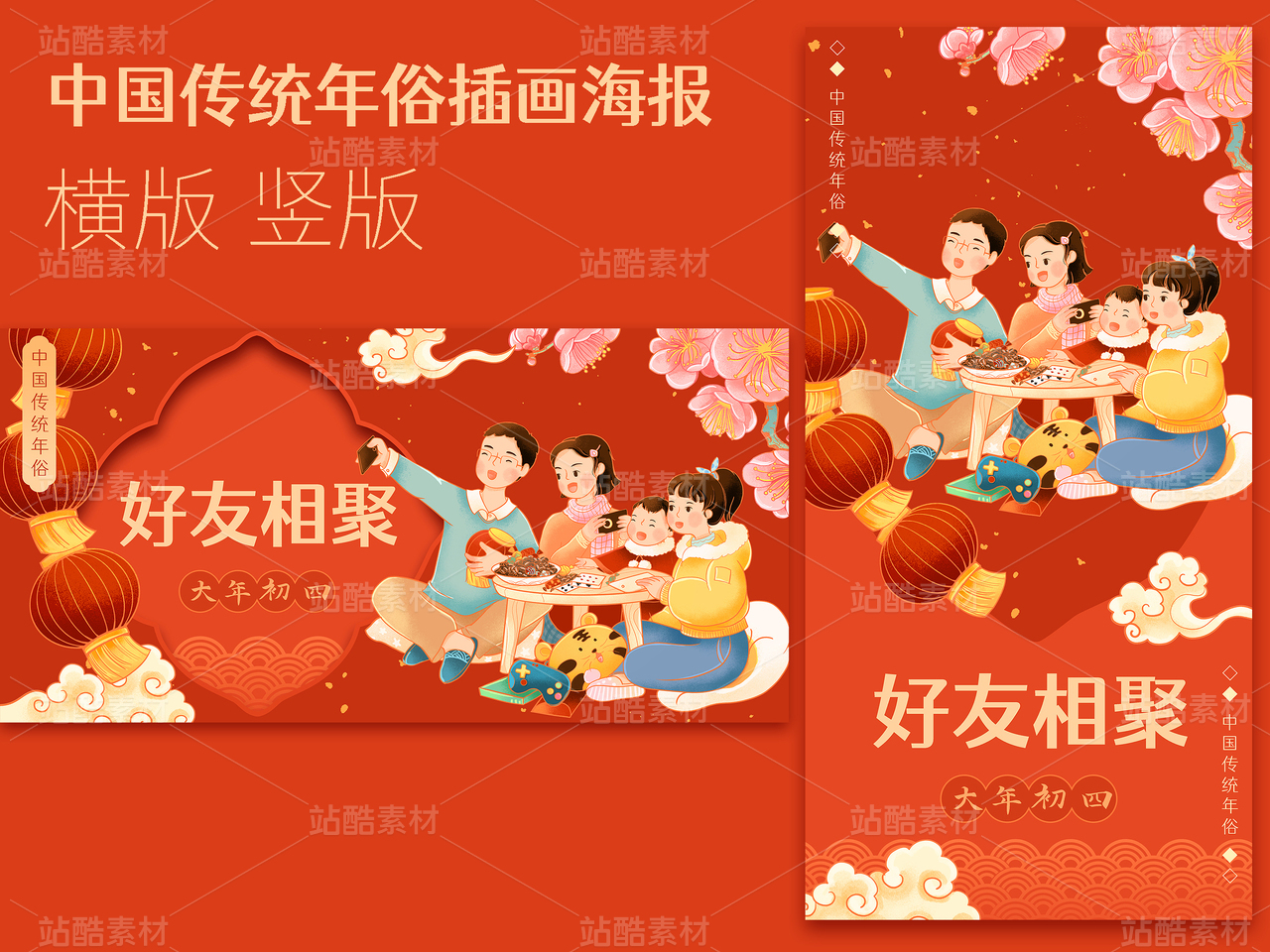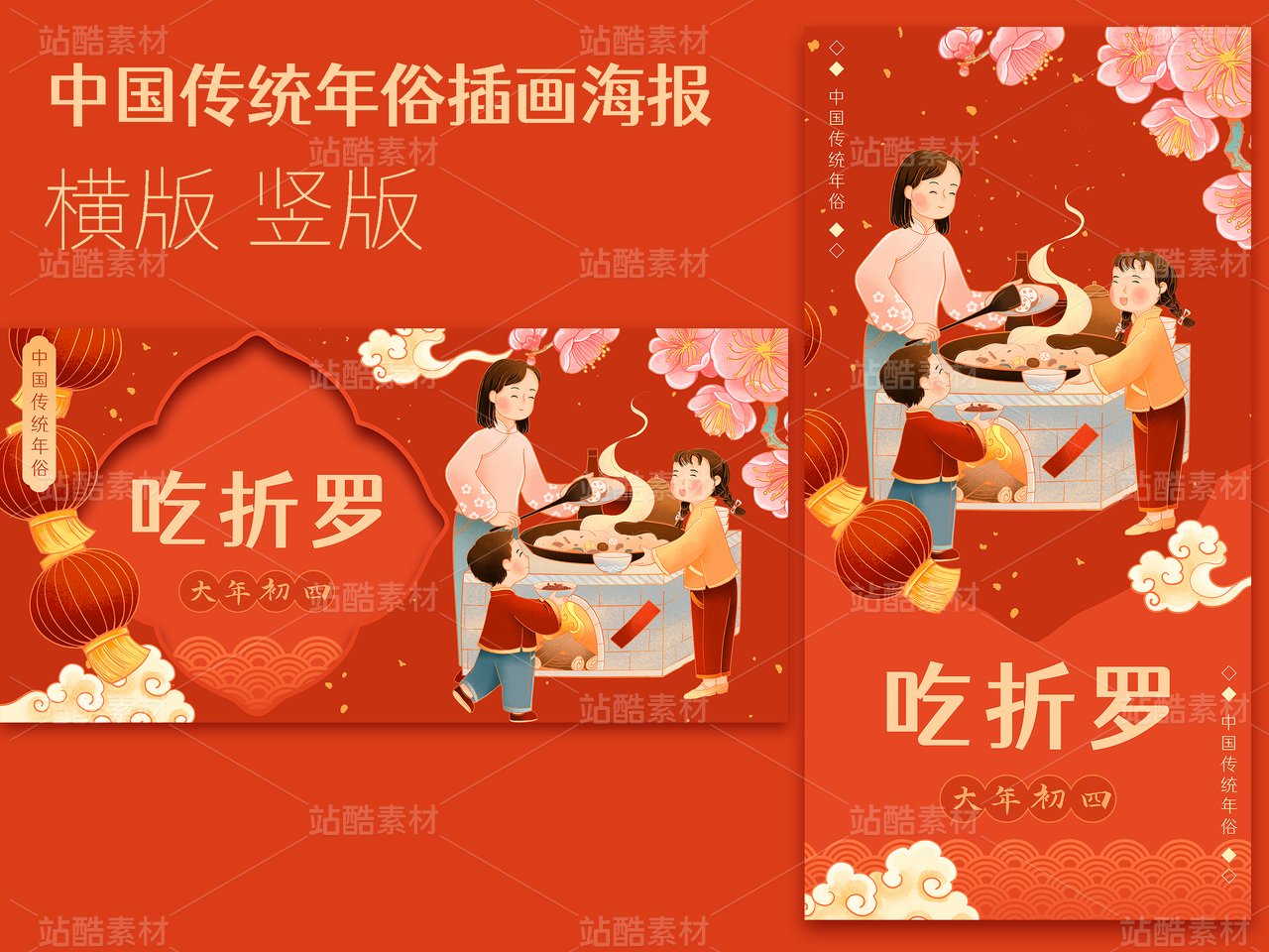 兔年春节初四吃折罗喜庆年俗节日竖版海报
