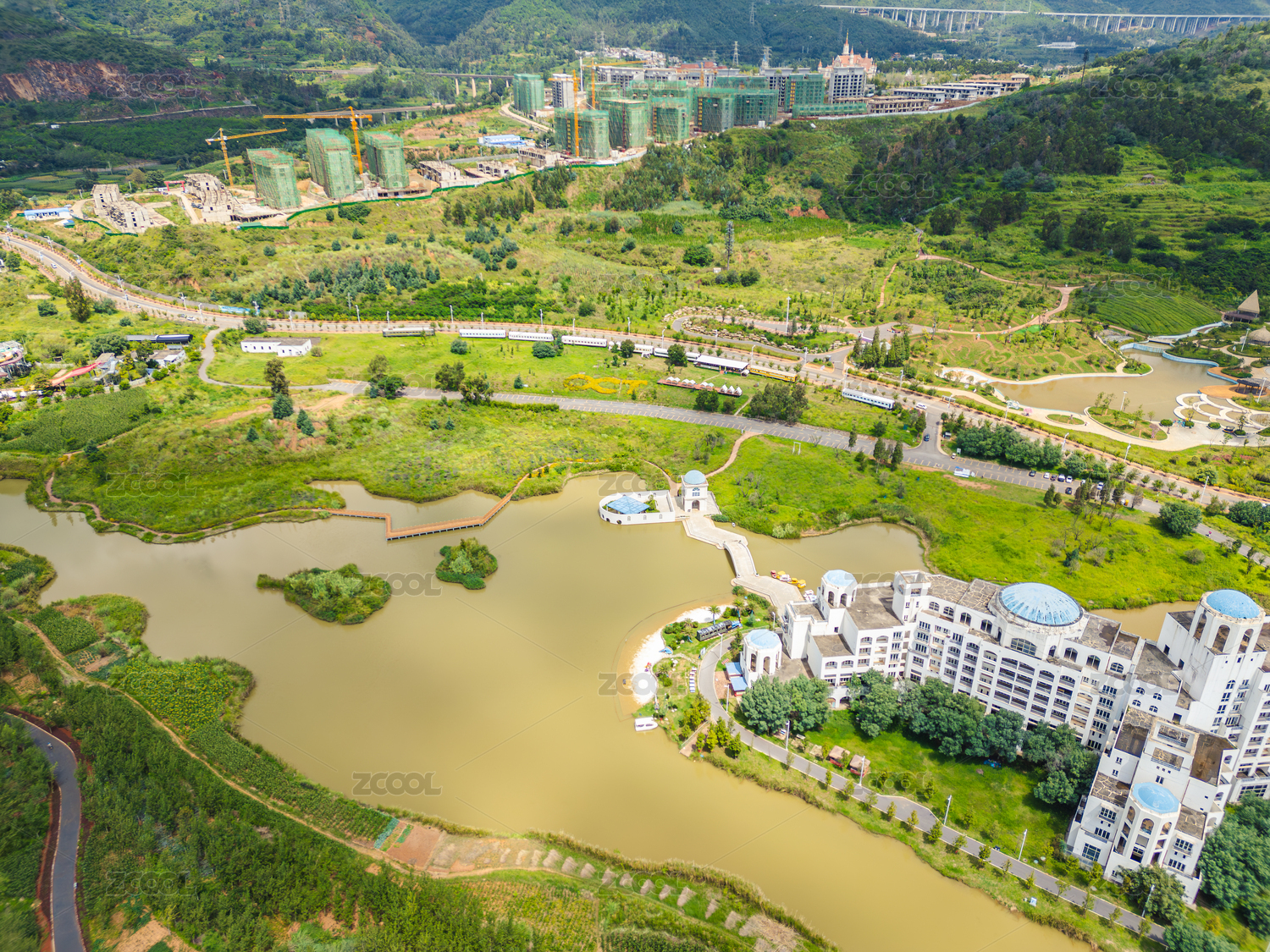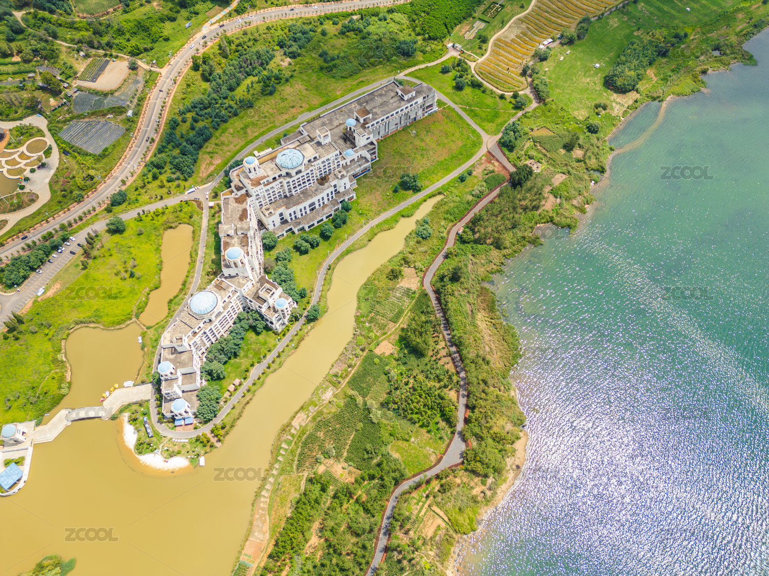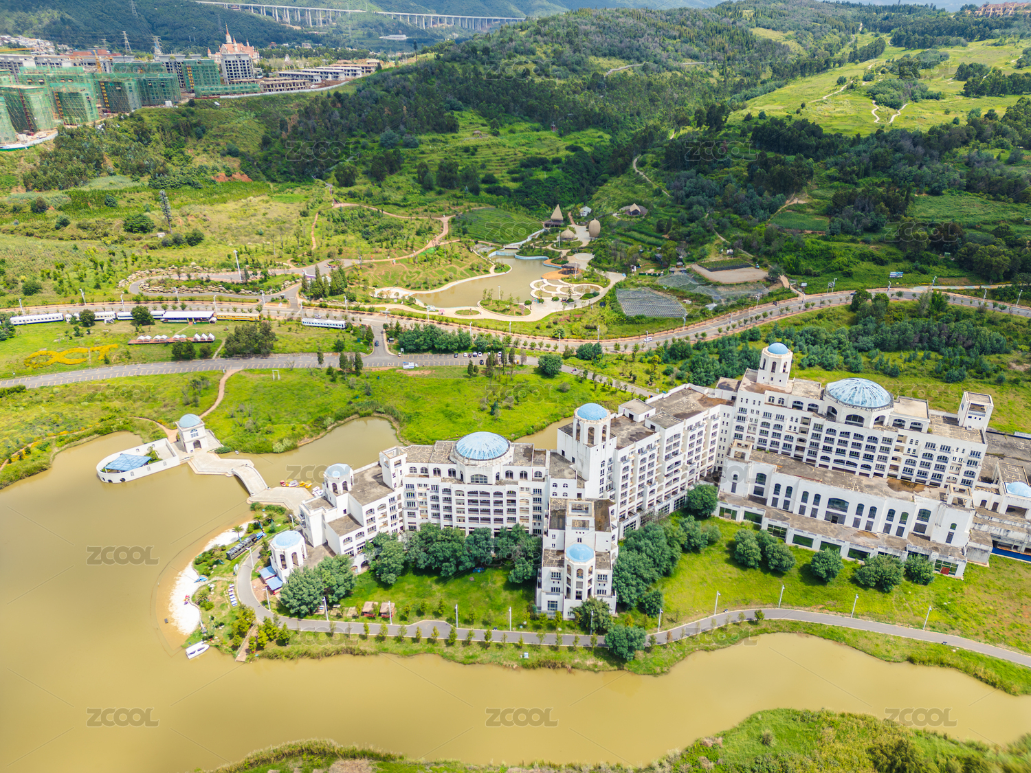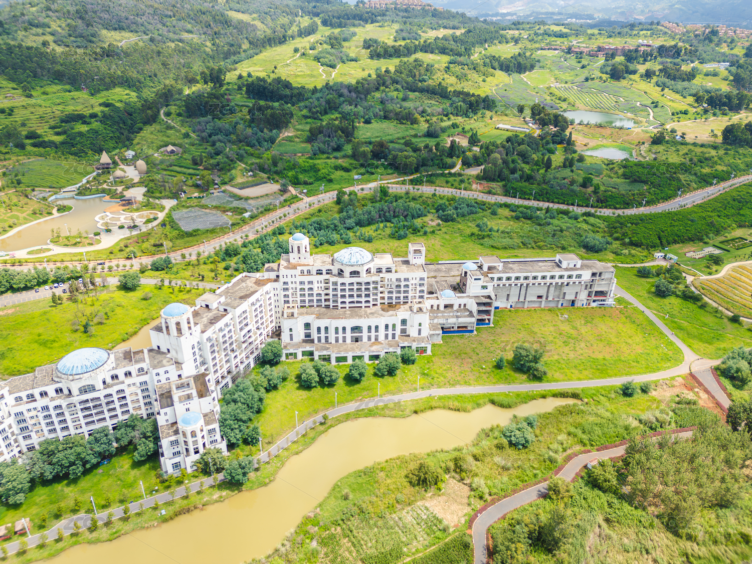 航拍荒废的度假酒店