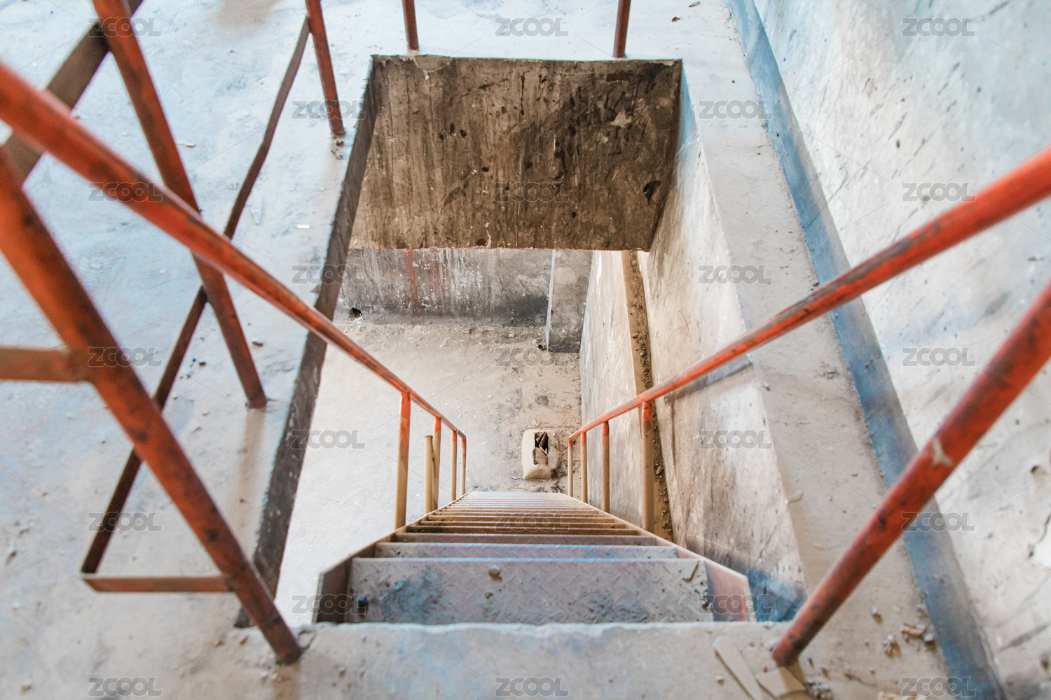 荒废的厂房中的红色金属梯子