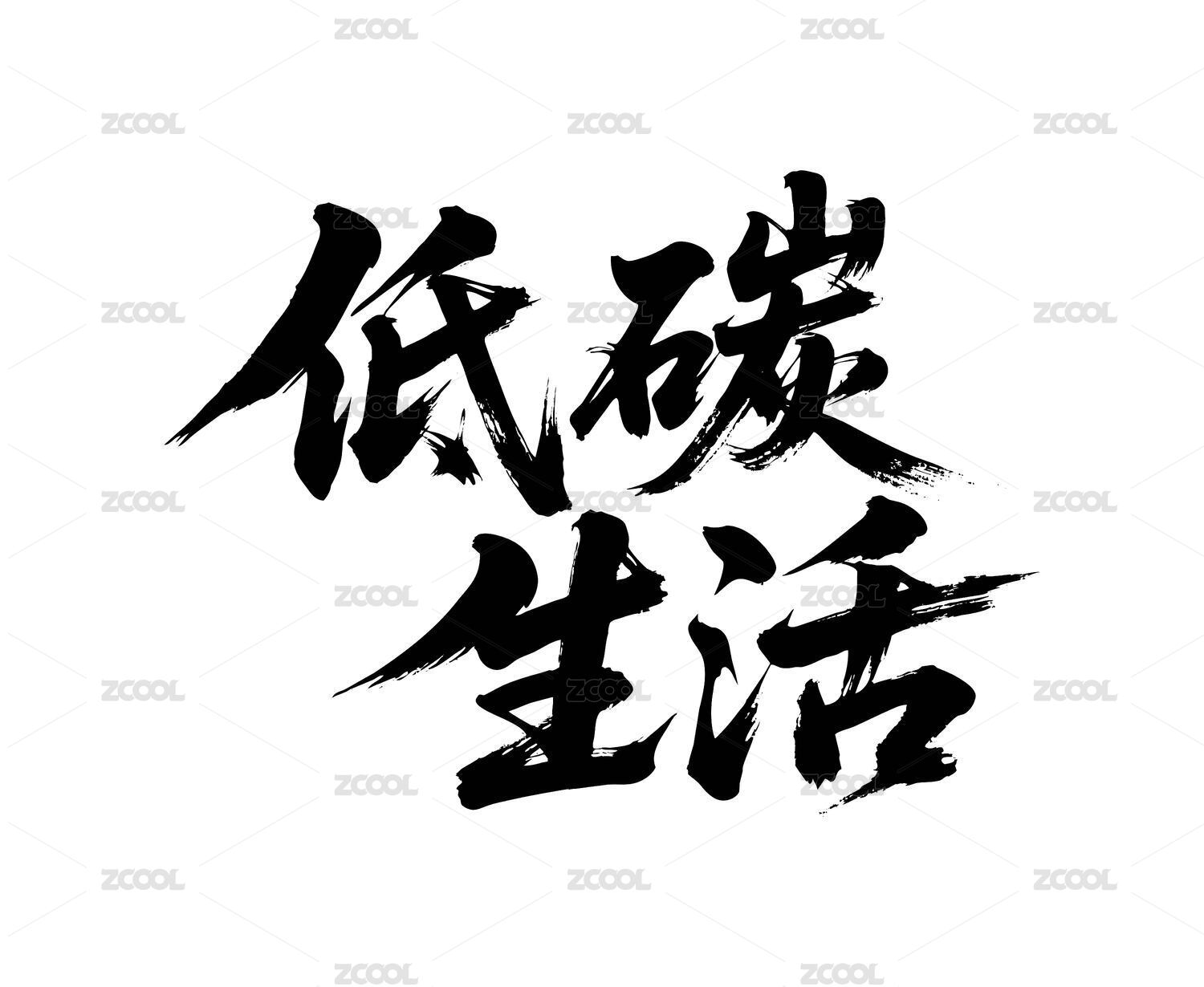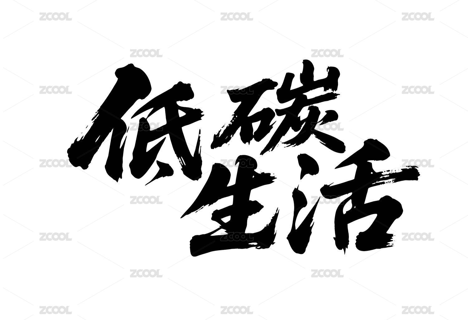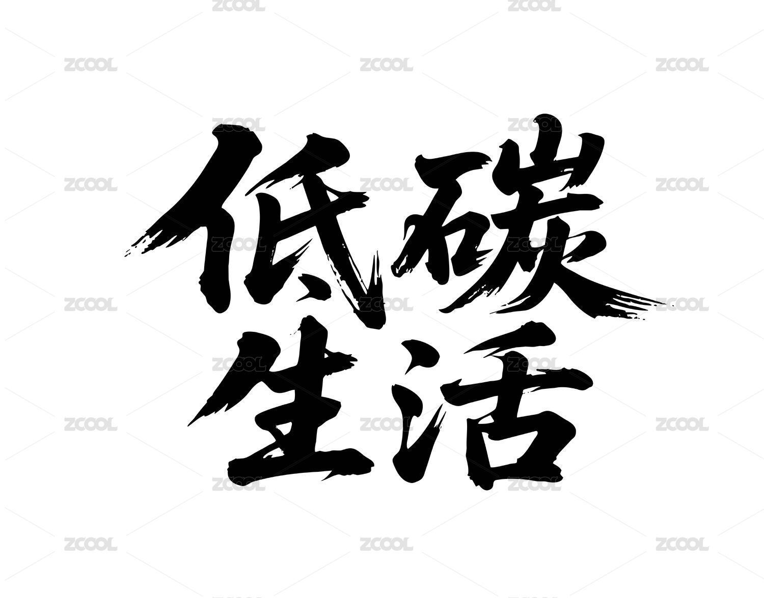 低碳生活矢量书法手写毛笔字