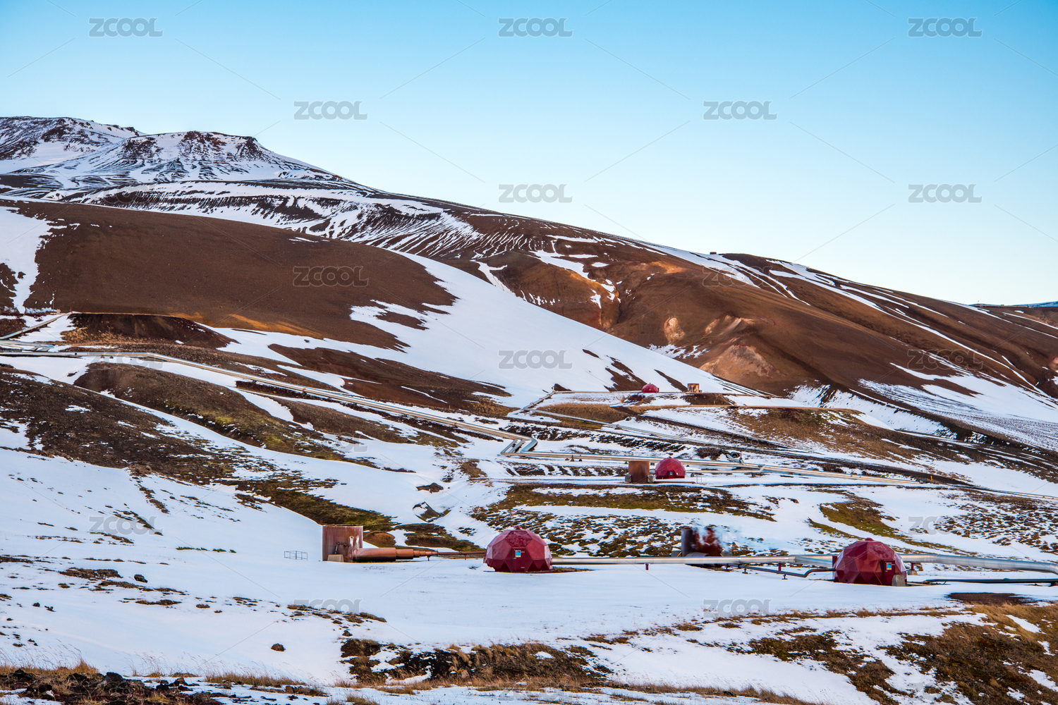 隐藏在冰岛雪山雪原中的可爱地热发电厂红色小屋