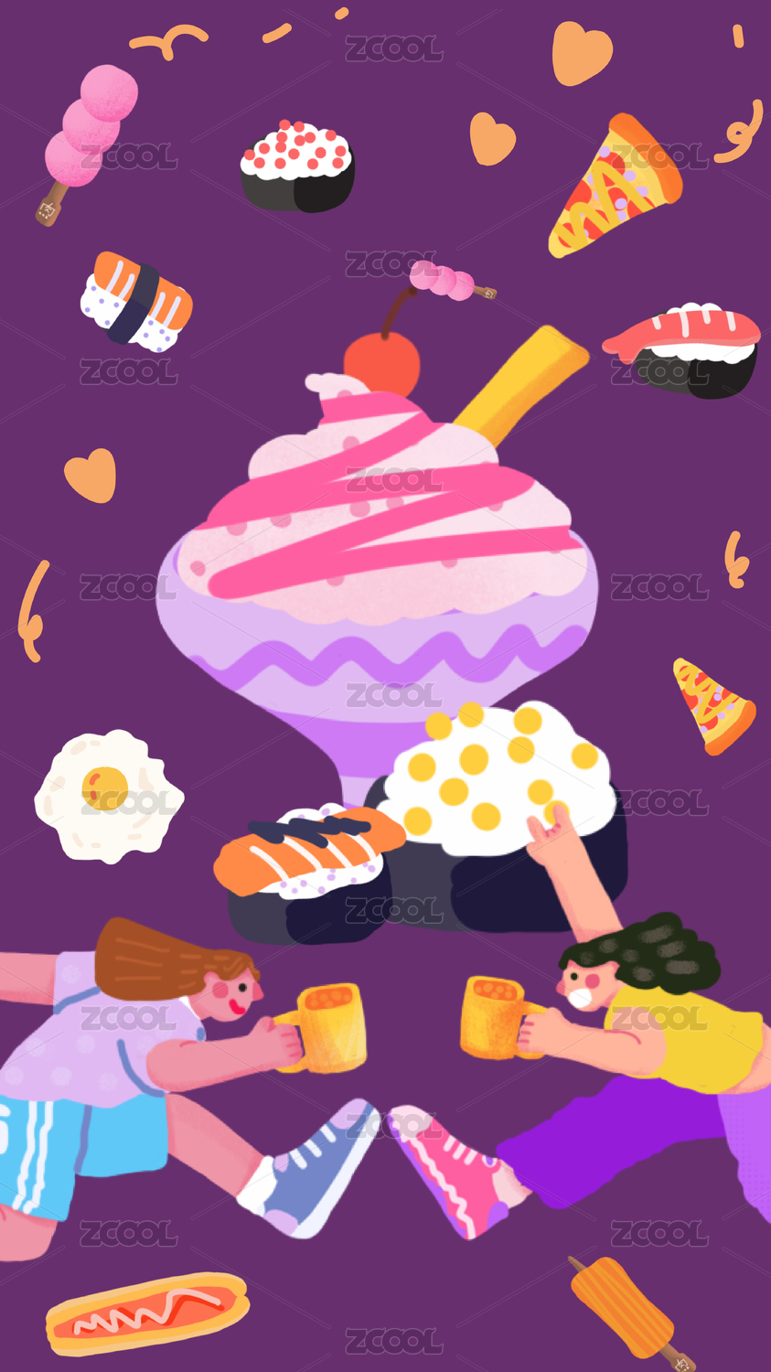 夏日汽水碰杯插画