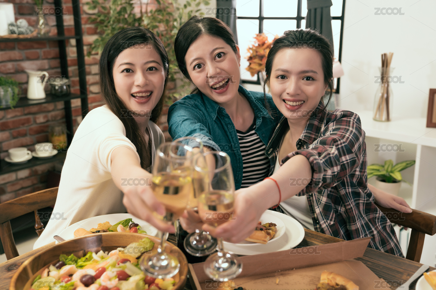 两个女孩碰杯庆祝美食节