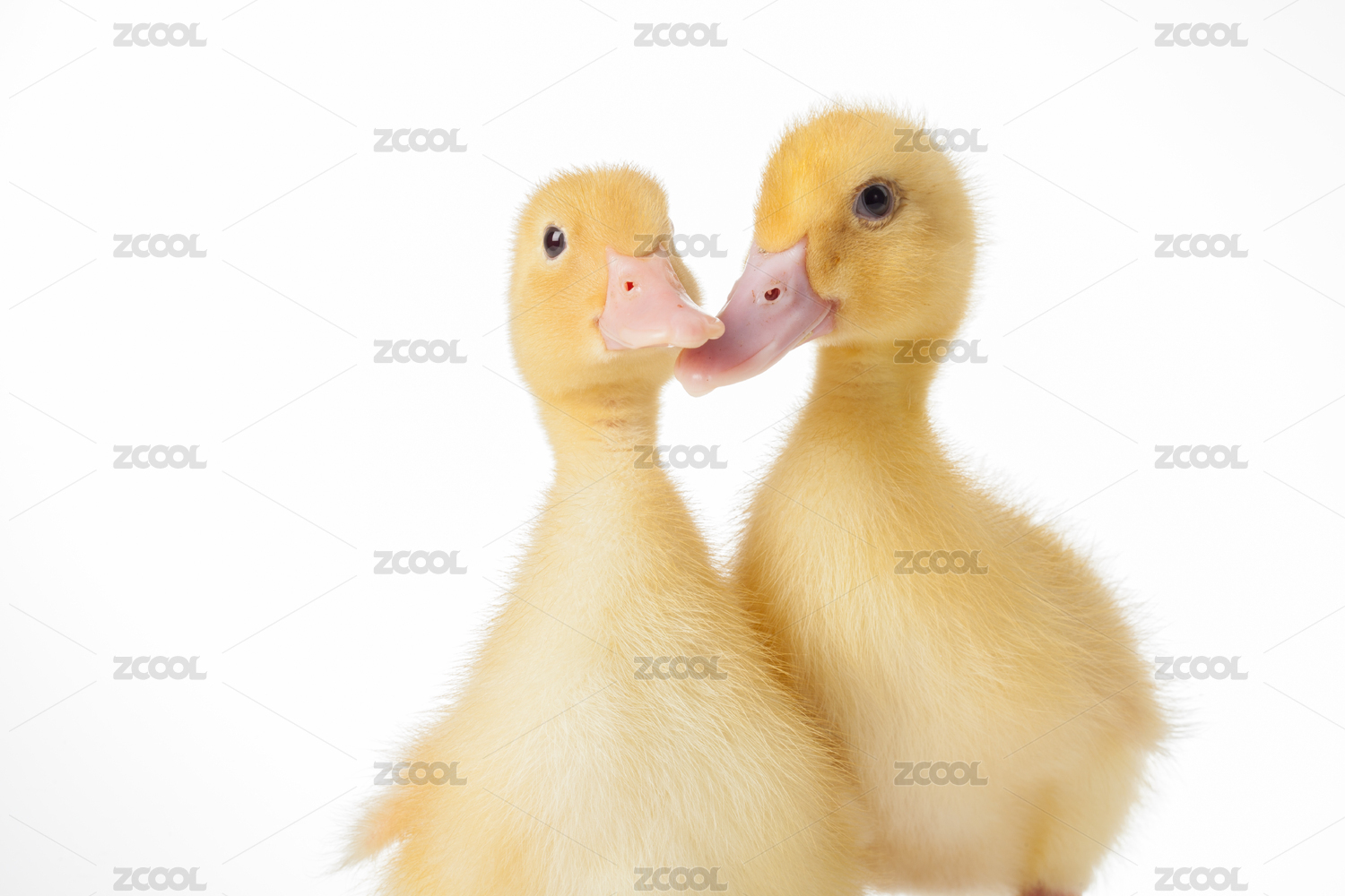 靠在一起的两只小鸭子头部特写